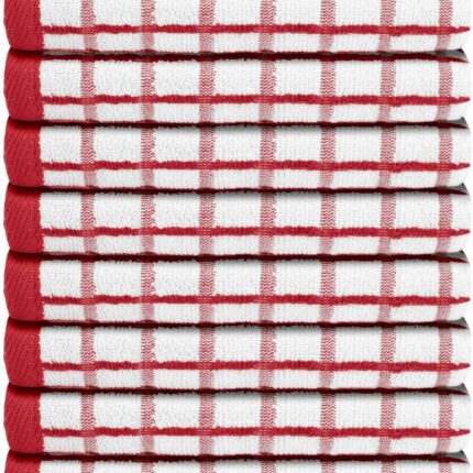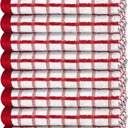 Premium Dish Towels for Kitchen with Hanging Loop 8 Pack Heavy Duty Absorbent 100% Cotton 410 GSM Terry Kitchen Towels 16×26 inch Red Color