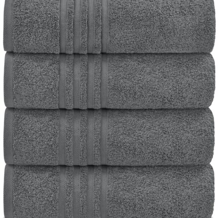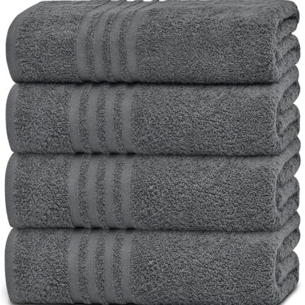 Grey Bath Towels Set of 4 Cotton Body Towel for Hotel Gym Spa Soft Extra Absorbent Quick Dry Towels for Bathroom 27×54 Inch