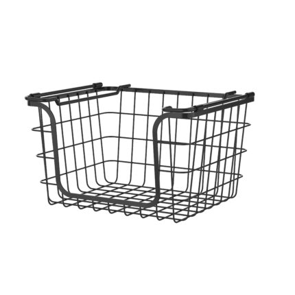 Highlights:1.Handles for convenient transportation2.Aesthetic open-front grid design for easy access3.Space-saving stackable design4.Durable metal wire construction5.Shelf-hanging option Details: Store your items