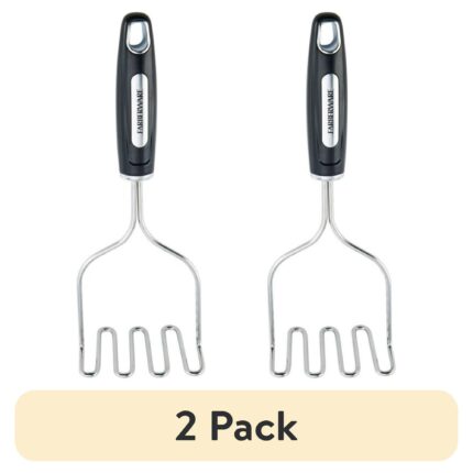 (2 pack) Professional Stainless Steel Potato Masher with Black Handle