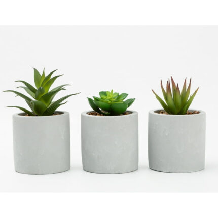 (4 pack) 3-Piece Succulent Set in Gray Cement Planters