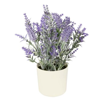 11-inch x 4-inch Artificial Lavender Plant in White Pot, Purple, for Indoor Use, by