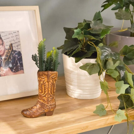 (4 pack) 7.25″ Artificial Cactus Succulent in Brown Ceramic Cowboy Boot Planter