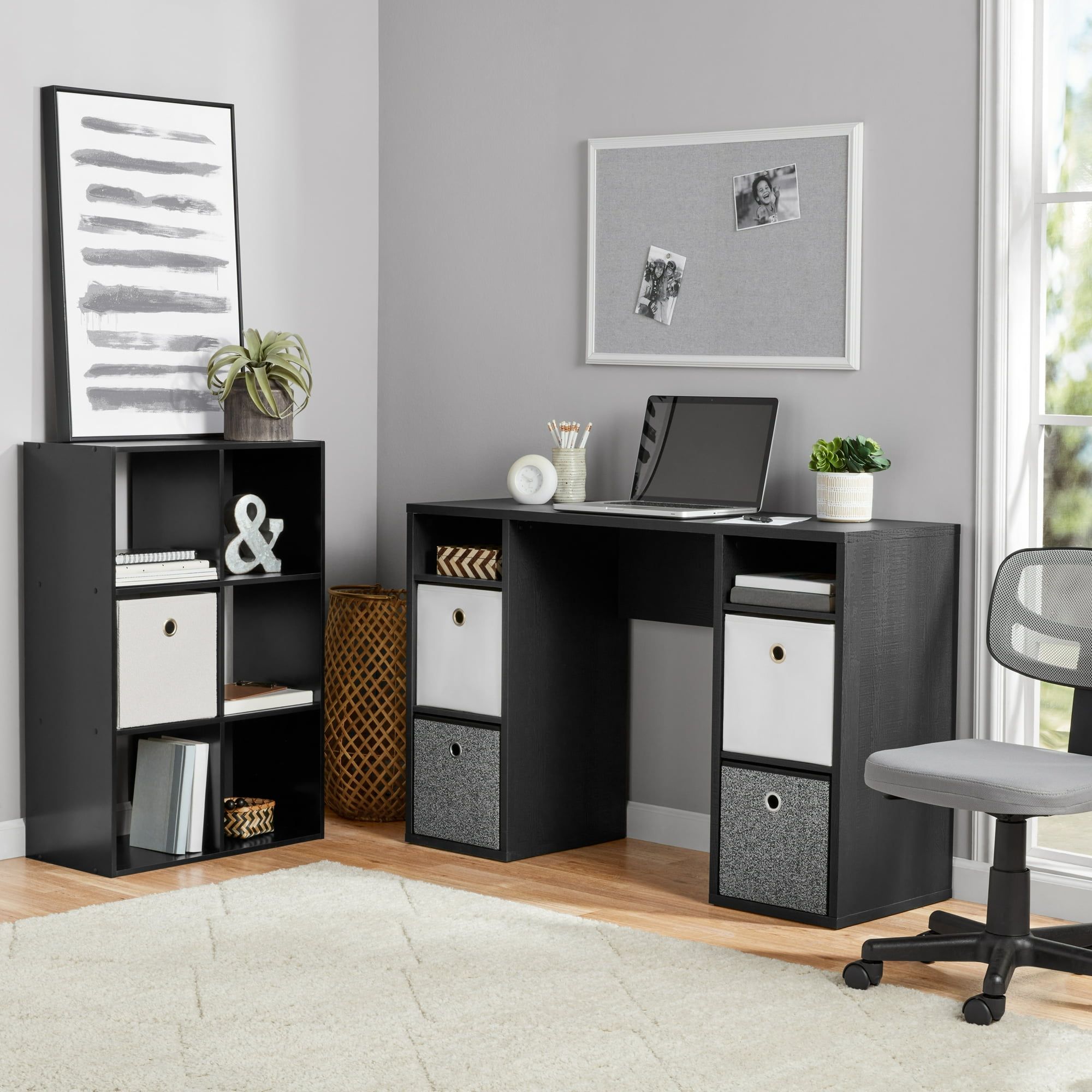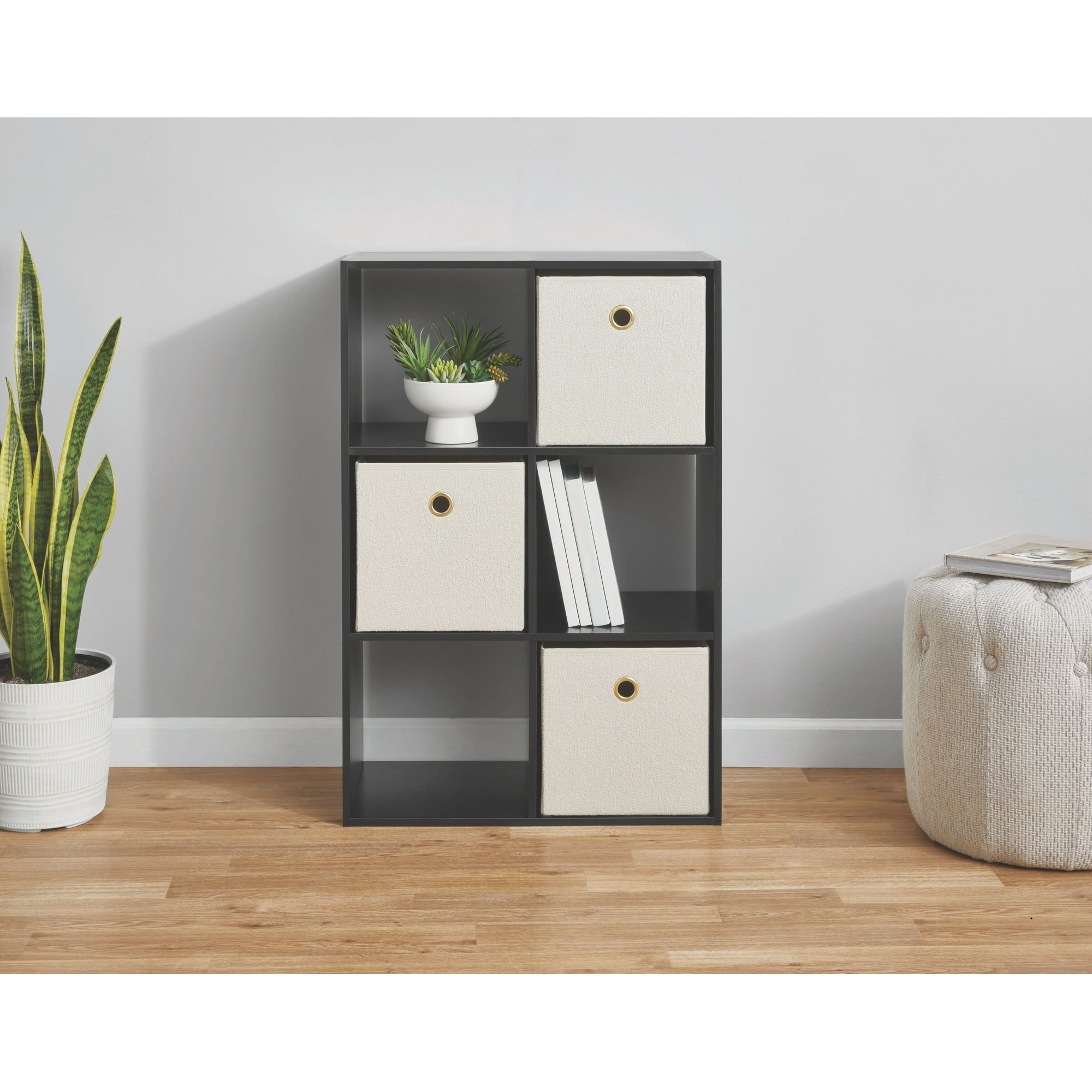 The Mainstays 6-Cube Storage Organizer features six compartments perfectly sized for storing and displaying office supplies, books, clothes, craft supplies, photos, collectibles and so much more! This sturdy bookcase can stand vertically or horizontally to best suit your needs and space. They are compatible with Mainstays 10.5" x 10.5" collapsible storage bins (sold separately) and available in multiple finishes. Three open-back cube shelves make managing cords and cables easy, while three closed-back shelves help keep items securely housed. Add an accent piece that is both functional and stylish to your living room, family room, home office, playroom, closet and more, with the Mainstays 6-Cube Storage Organizer.