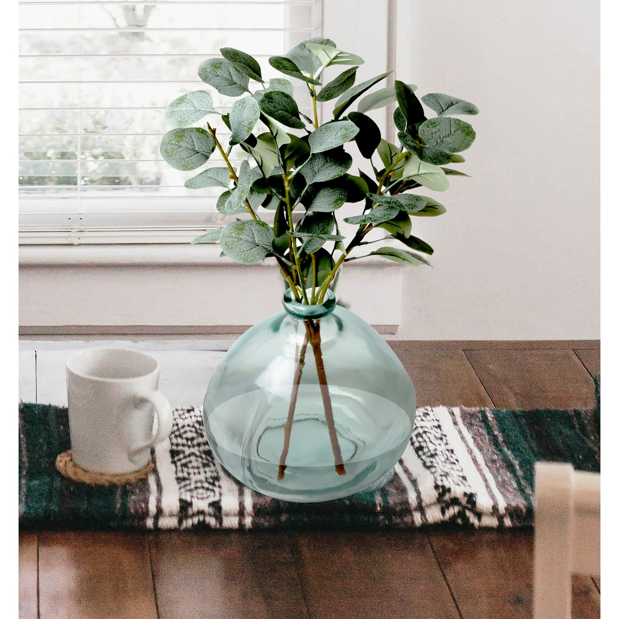 12″ Artificial Green Eucalyptus in Blown Glass Vase