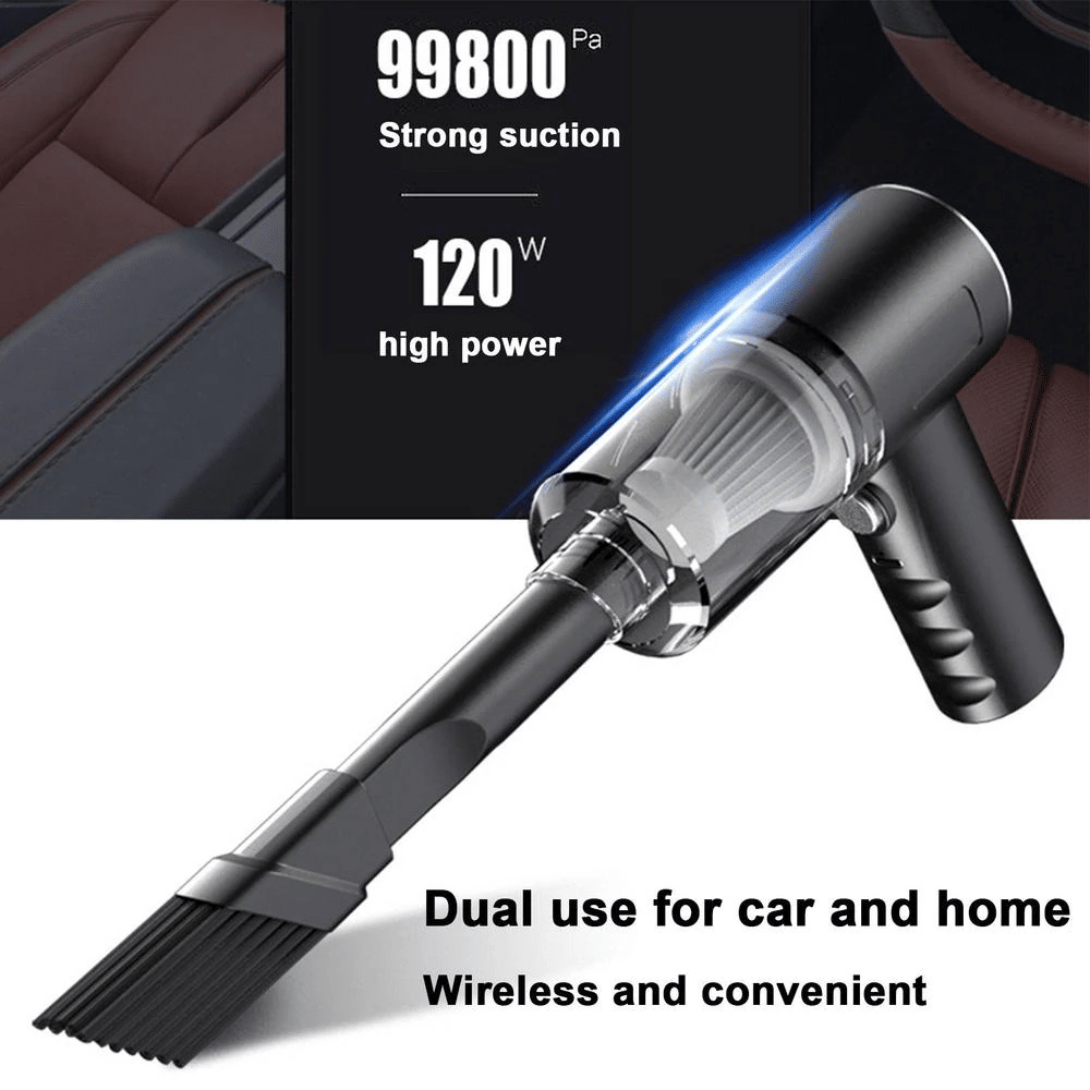 - 9KPa Strong Suction The handheld car vacuum has 9Kpa Strong Suction, Suitable for daily housework to clean up the dust. Output power 120W superpower motor provides strong suction up to 9000pa, which can quickly and easily remove food residues, particles, and pet hair around the house or in the car. Wet/Dry vacuum wireless mobile operation is more convenient.