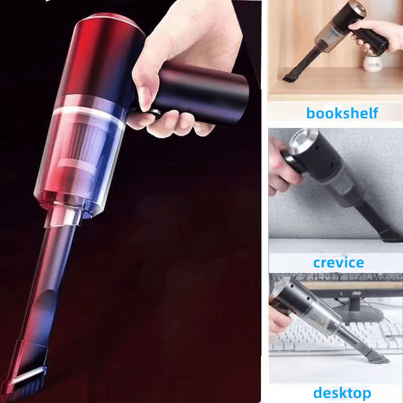 The handheld vacuum cleaner with strong suction can clean hidden dusts of keyboard, laptop, computer, printer, camera equipment, handbag, office tool, car, and home furniture. Suitable cleaning for car, home and office.