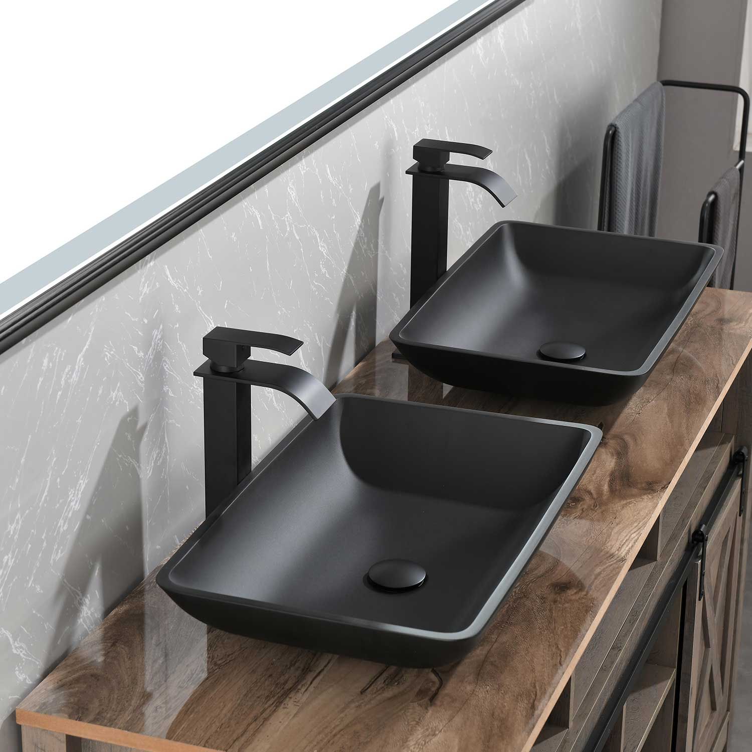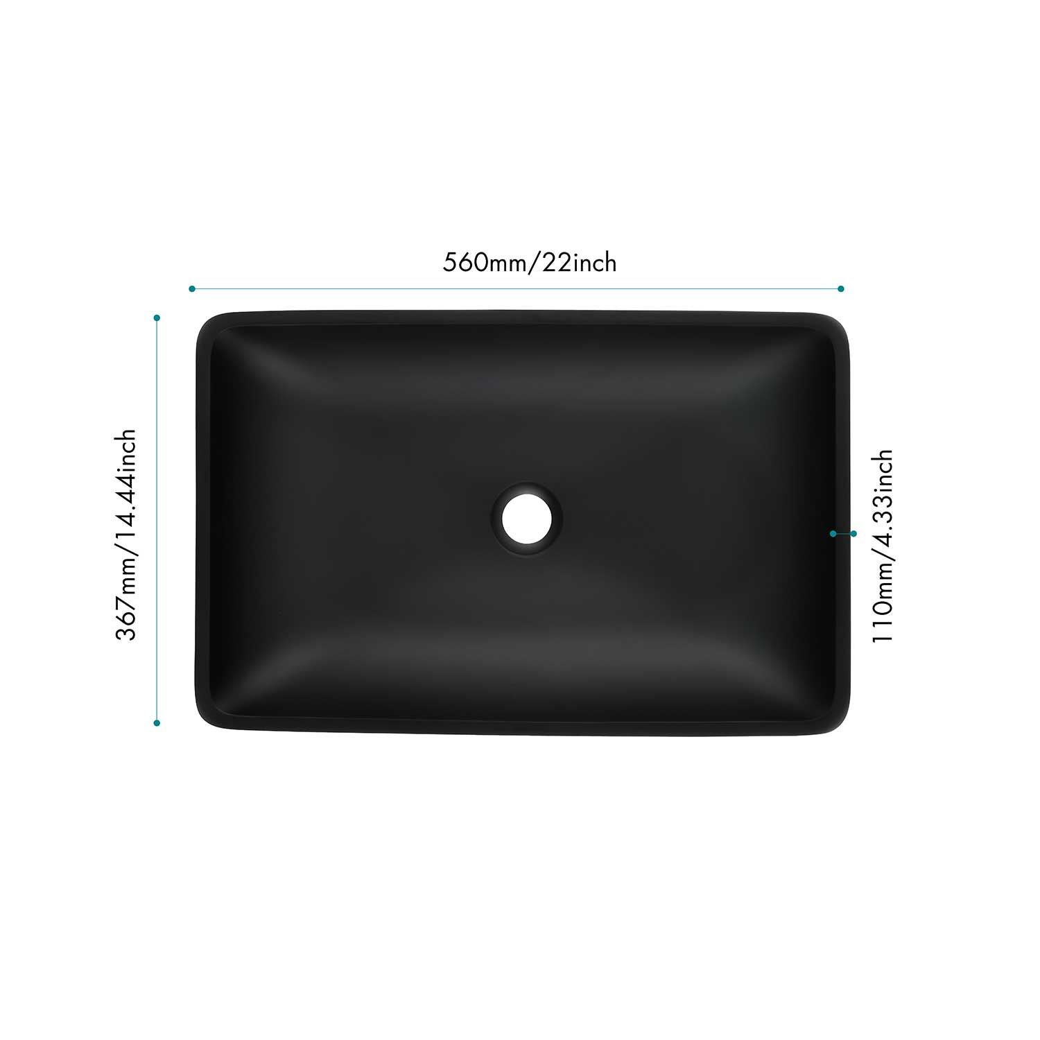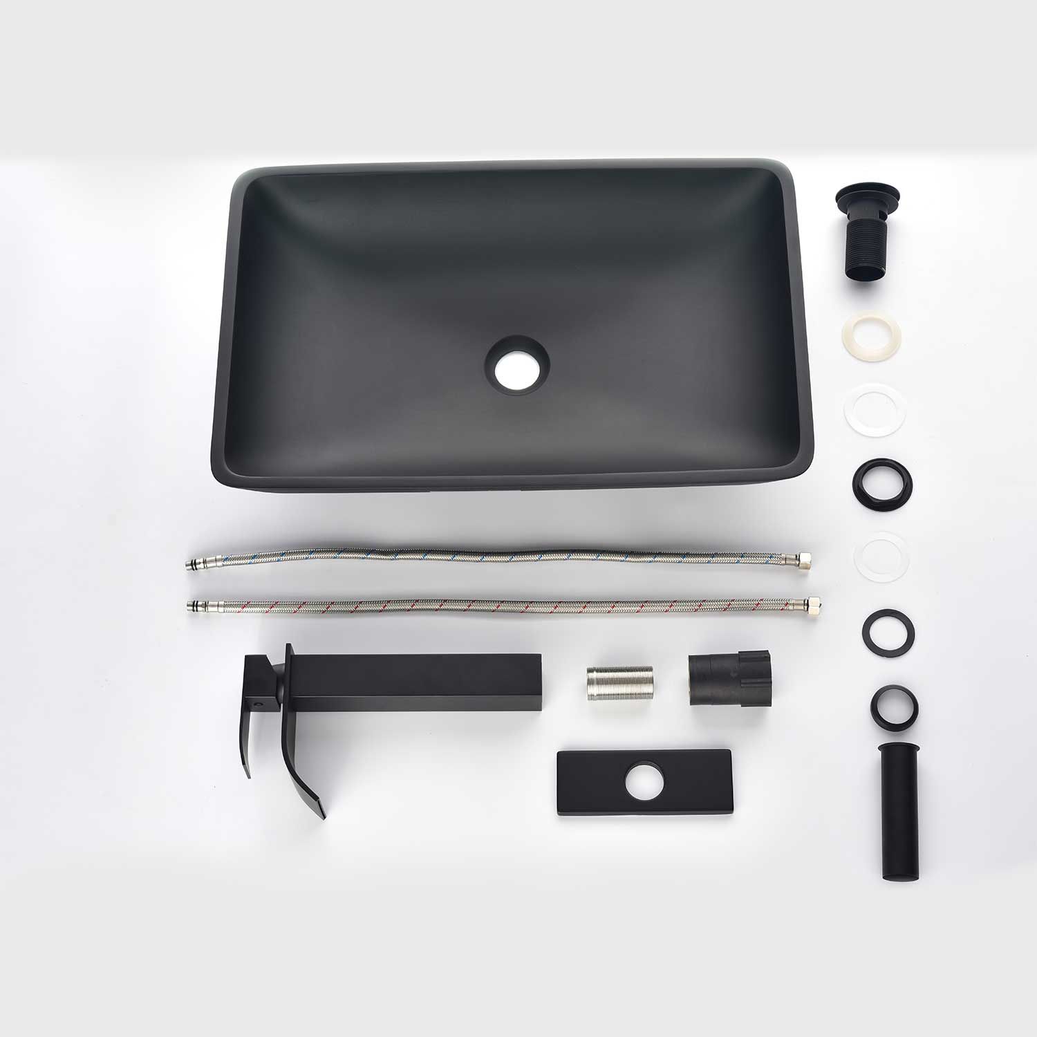 Be the first to review “14.38″ L -22.25″ W -4-3/8 in. H Matte Shell Glass Rectangular Vessel Bathroom Sink in Black with Faucet and Pop-Up Drain in Matte Black” Cancel reply