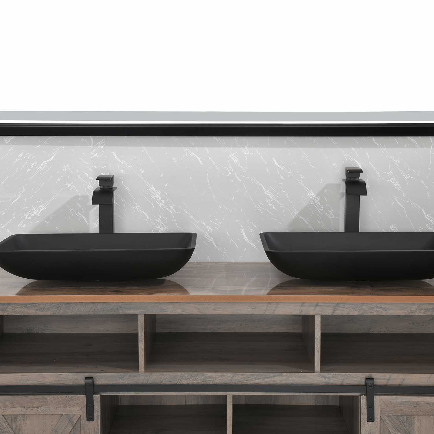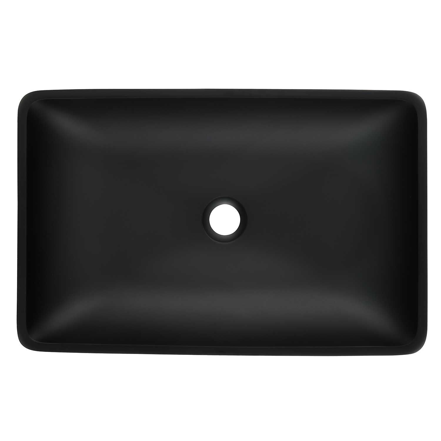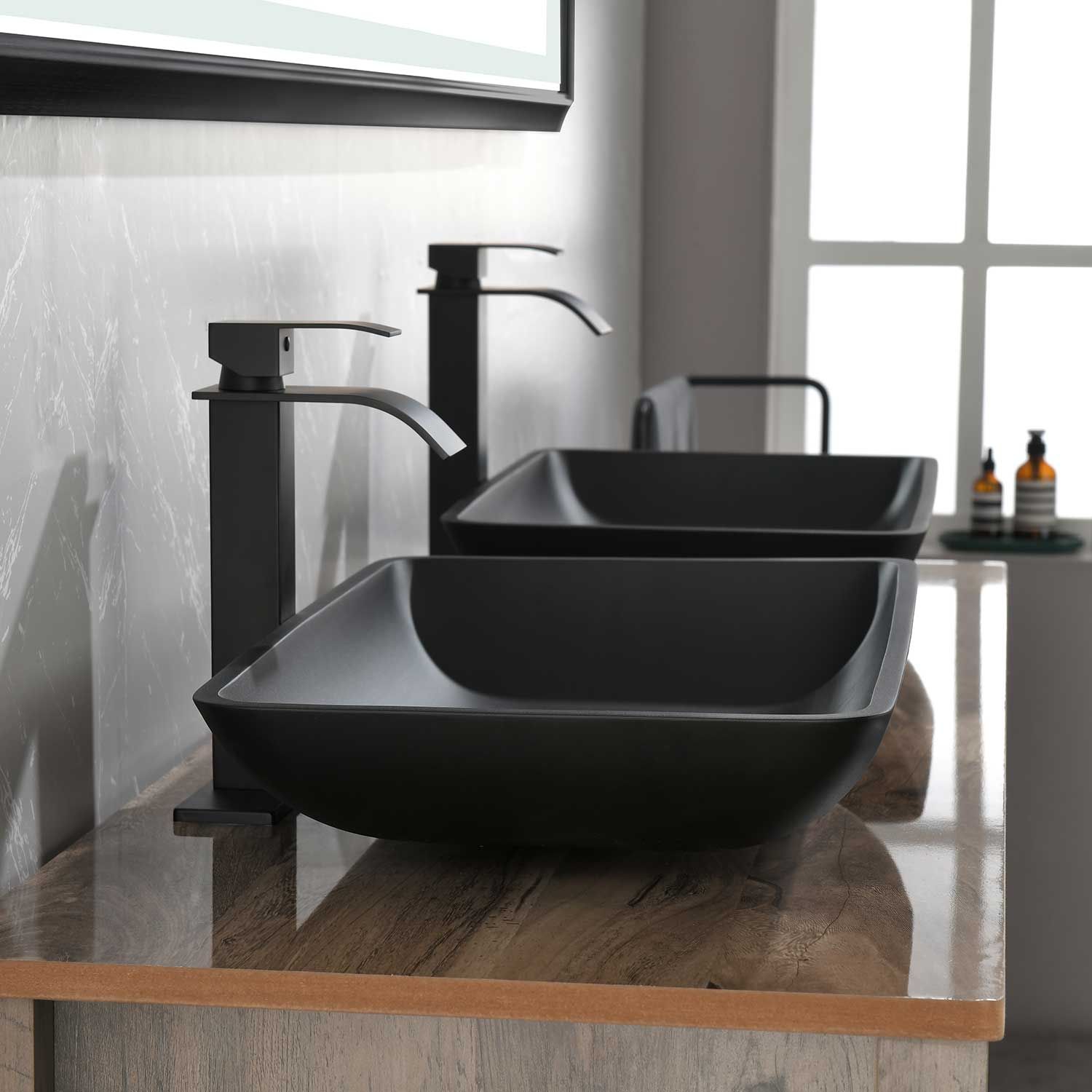 Be the first to review “14.38″ L -22.25″ W -4-3/8 in. H Matte Shell Glass Rectangular Vessel Bathroom Sink in Black with Faucet and Pop-Up Drain in Matte Black” Cancel reply