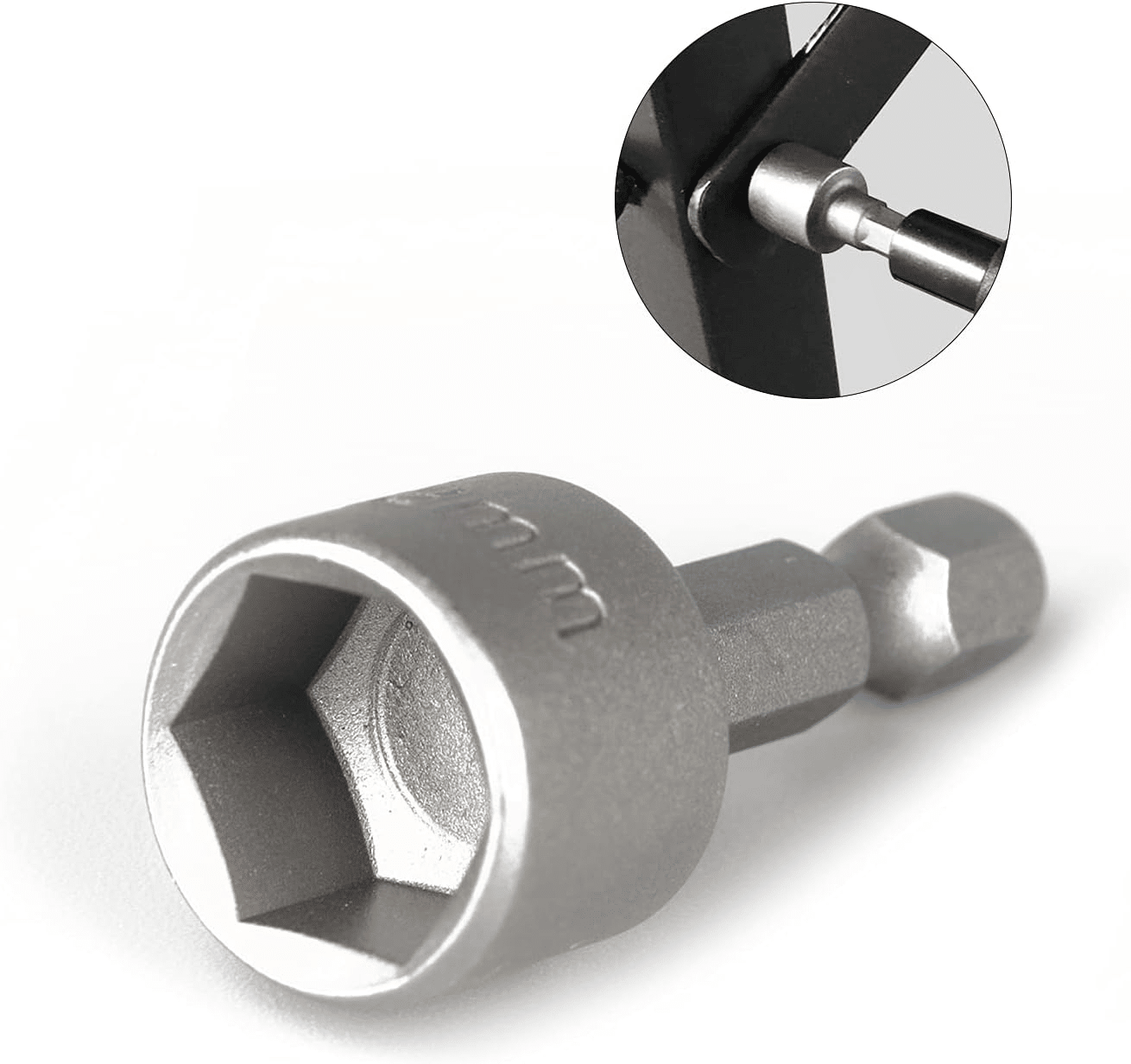 • What You Get: 14-Piece Quick Change Hex Nut Tool Kit with Indents contains 3/16 , 1/4 , 9/32 , 5/16 , 11/32 , 3/8 , and 7/16 Standard Sizes as well as Metric Sizes in 5mm, 5.5mm, 6mm, 7mm, 8mm, 10mm, and 12mm, as well as a handy tool bit holder to keep your kit organized and ready to use.