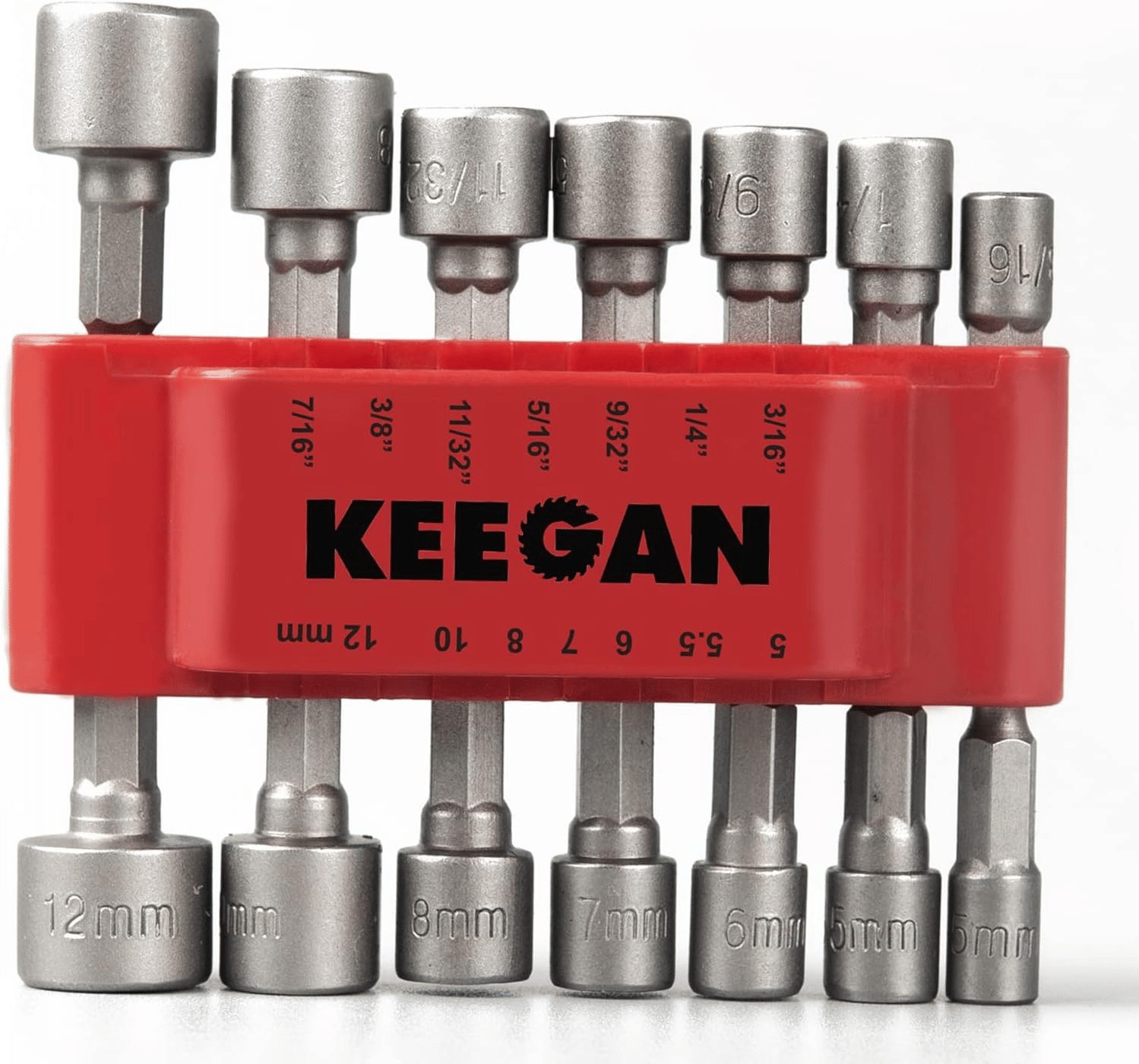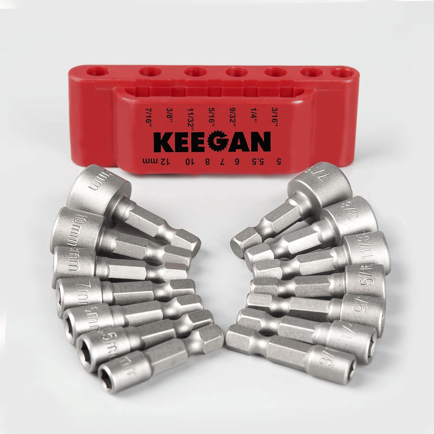 • KEEGAN TOOLS 14-Piece Quick Change Power Nut Driver Bit Set with Indents, 1/4 Hex Shanks Fit Quick-Change/Release Chucks and Lock Firmly in Standard Chucks, Includes Easy Holder Storage.
