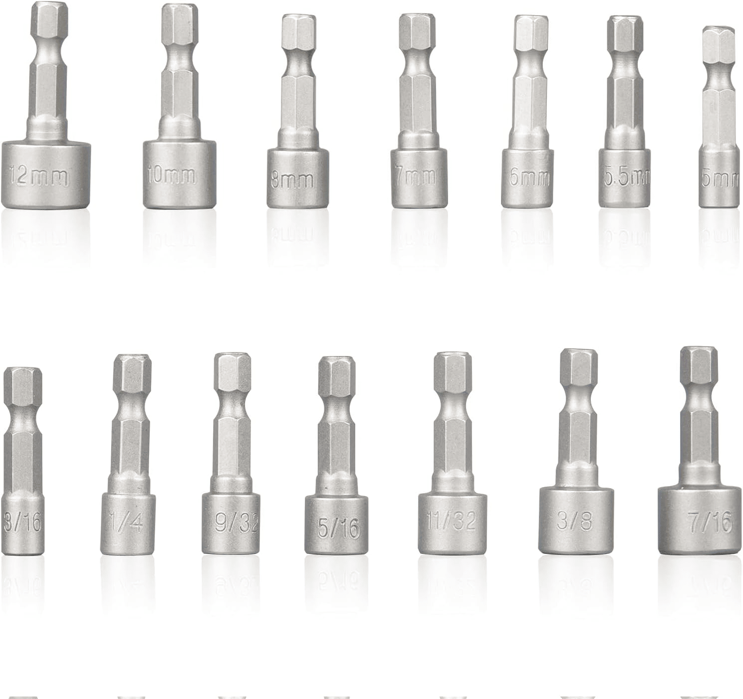 14 PCS Power Nut Driver Bit Set Quick Change MM & SAE Impact 1/4″ Hex Shank USA