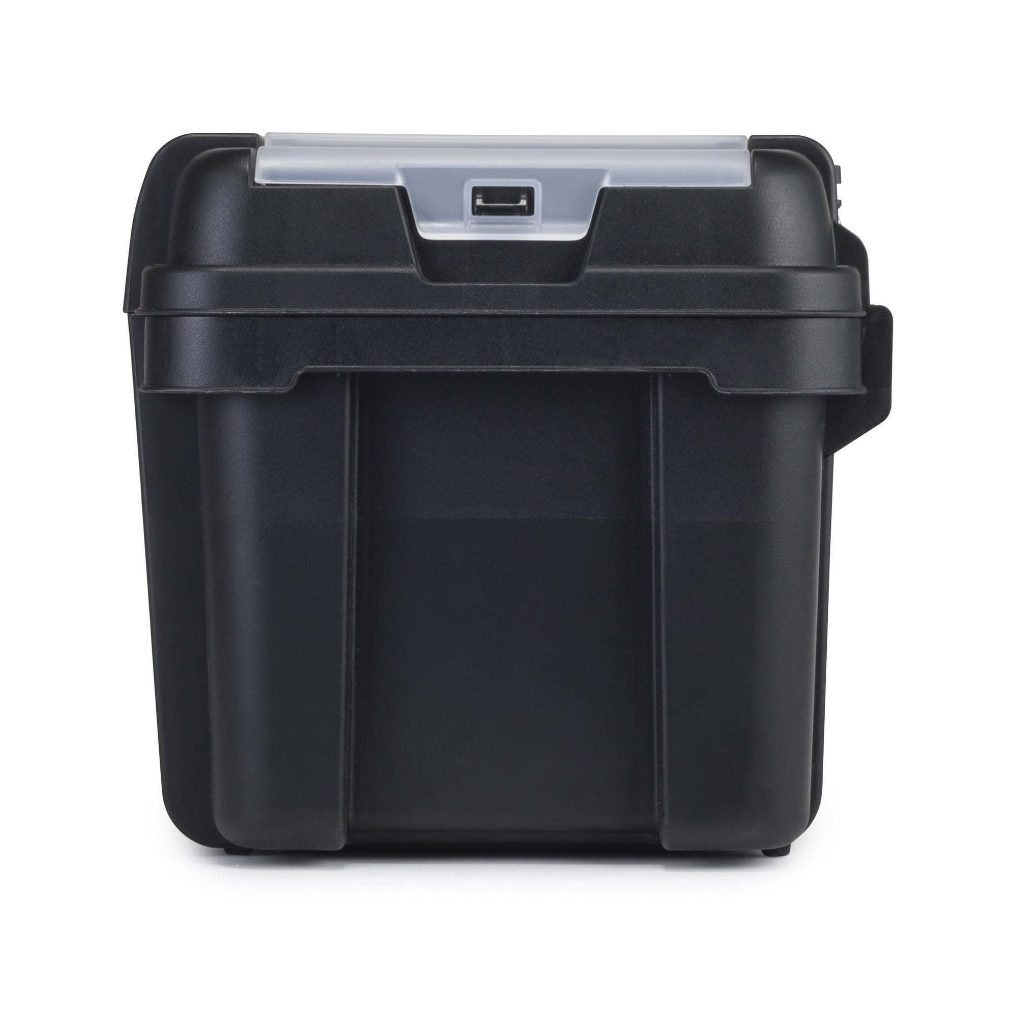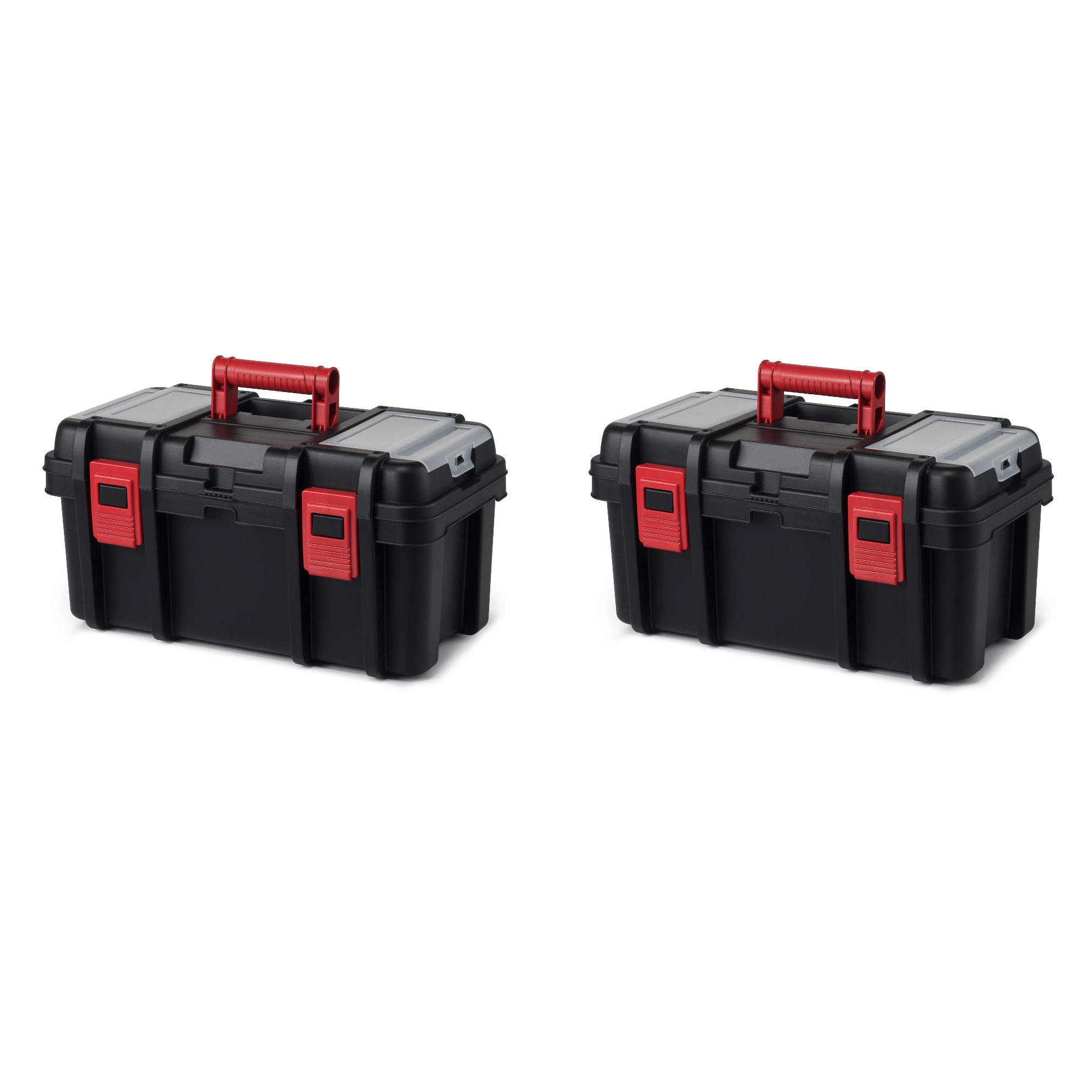 16-Inch Toolbox was designed with the ambitious DIYer in mind but this heavy-duty tool box comes with plenty of pro functionality. The integrated lid organizers boast clear lids so you can see the contents in an instant. A removable utility tray allows for easier hand tool transportation so you can keep your more frequently used tools within reach. Easy to haul around from the garage to the back yard, the tool box comes with a central carrying handle. A metal lid stopper guarantees that the lid stays open for as long as you want it to, without collapsing as you search for components inside the box. The pad lock ready eye offers a convenient security upgrade method to keep your tools secure (lock not included).