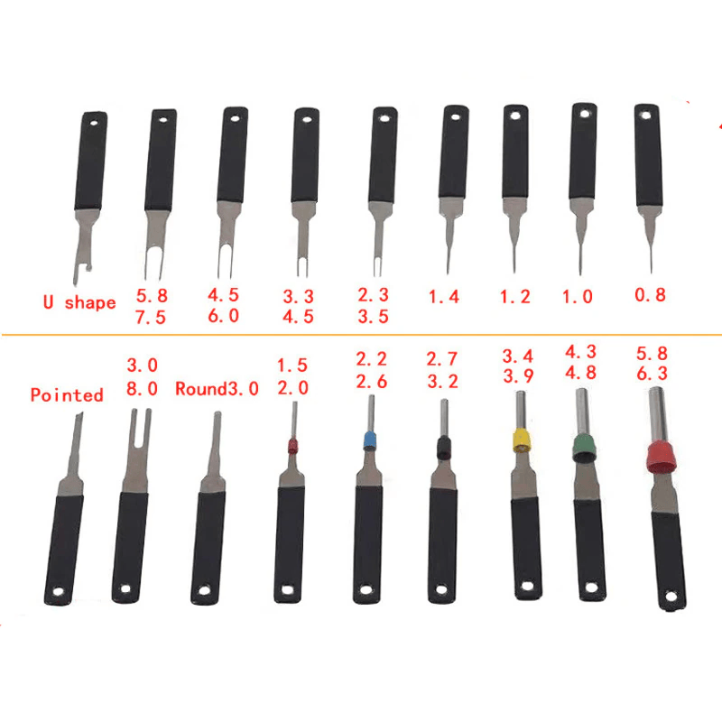 - High Quality The terminal extractor tool is made of premium quality stainless steel and plastic, not easily out of shape, and can be used for long term use. The pin removal tool has different sizes to fit any terminal.