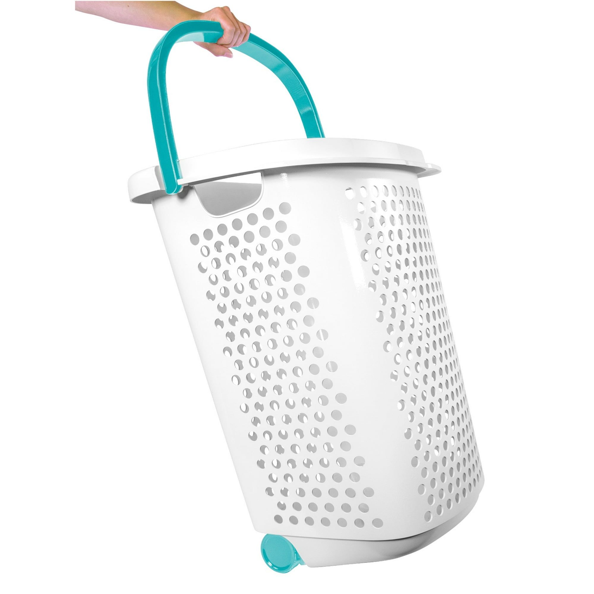 2 Bushel Rolling Plastic Laundry Hamper with Pop-up Handle, White, Adult / Tween