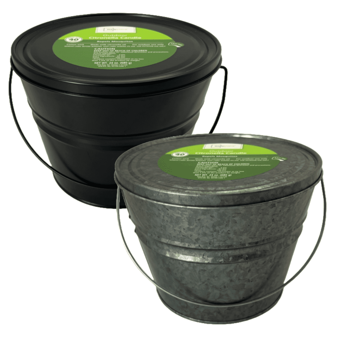 (2 pack) 24oz Citronella Scented Metal Bucket with 40 Hr Burn Time, Heavy Duty