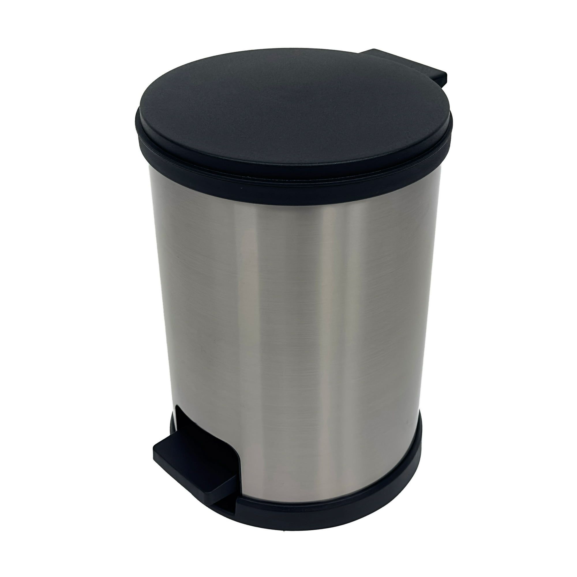 (2 pack) Bathroom Trash Can, 1.5 Gallon, Plastic Round Step Garbage Bin, Silver