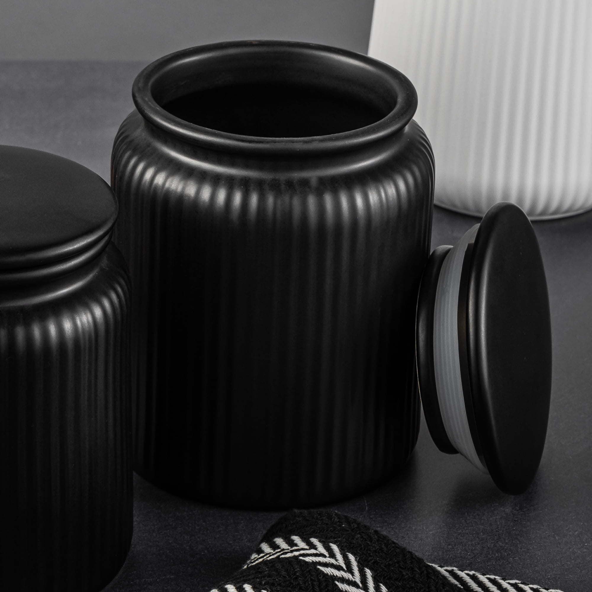 (2 pack) Medium (815mL) Ceramic Ribbed Kitchen Organization Jar, Black