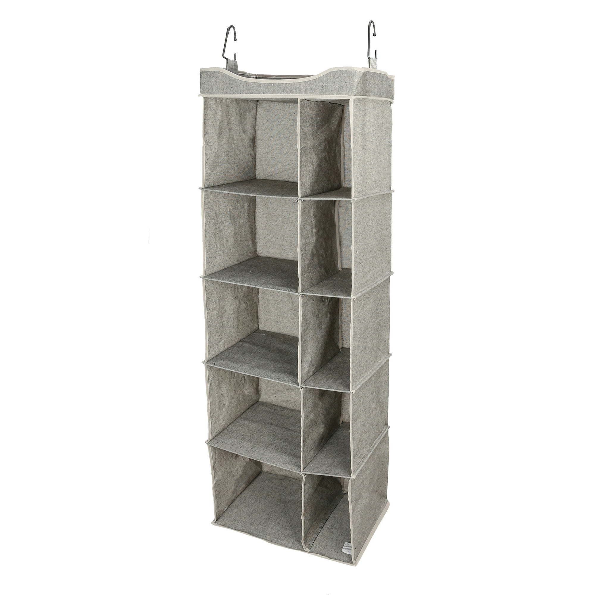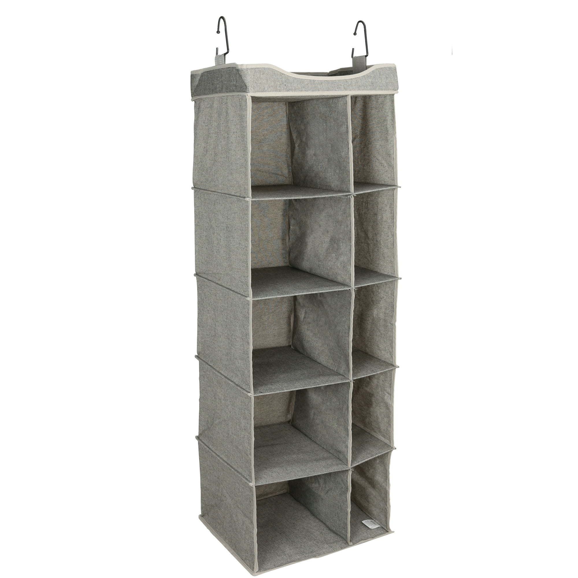 Charleston 10-Compartment Hanging Closet Organizer is ideal for improving your closet organization. It can not only save closet space, but also display clothing in an easily accessible place.10 spacious compartments help to sort small items, and the open design allows you to choose easily. Metal hooks on the top fits most closet rods and provides strong support for the hanging shelf. Collapsible design makes it space-saving and easy to store when not in use. This Hanging Closet Organizer offers ample space for storing clothing and accessories like sweaters, shoes, towels, pajamas, and hats. It is easy to clean with wet wrap for this hanging closet organizer. Ideal for adults and kids, men and women to store a variety of items.