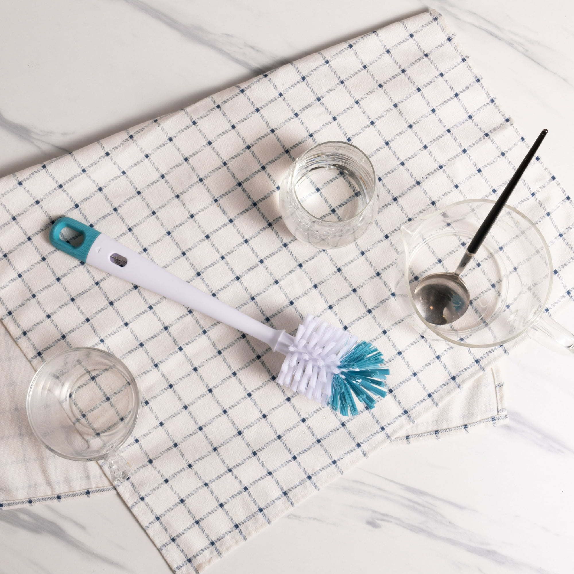 This 2-piece bottle cleaning set includes a bottle brush with a self-contained straw brush in the handle so you can keep all your bottles and straws clean and spotless. The 12-inch bottle brush makes it easy to scrub and clean your water bottles, baby bottles, containers, vases, dishes, and more. Its narrow head, tapered handle, and firm bristles fit right through tighter openings to reach the sidewalls, corners, rims, and the other hard-to-get areas in your bottles. The flexible mini straw brush is perfect for washing straws, spouts, and pop-tops that most kitchen cleaning brushes can’t fit inside of. After use, the loop on the end of the self-contained straw brush allows you to hang the brush to dry or store, and the brushes are top-rack dishwasher safe for a quick and easy clean up.