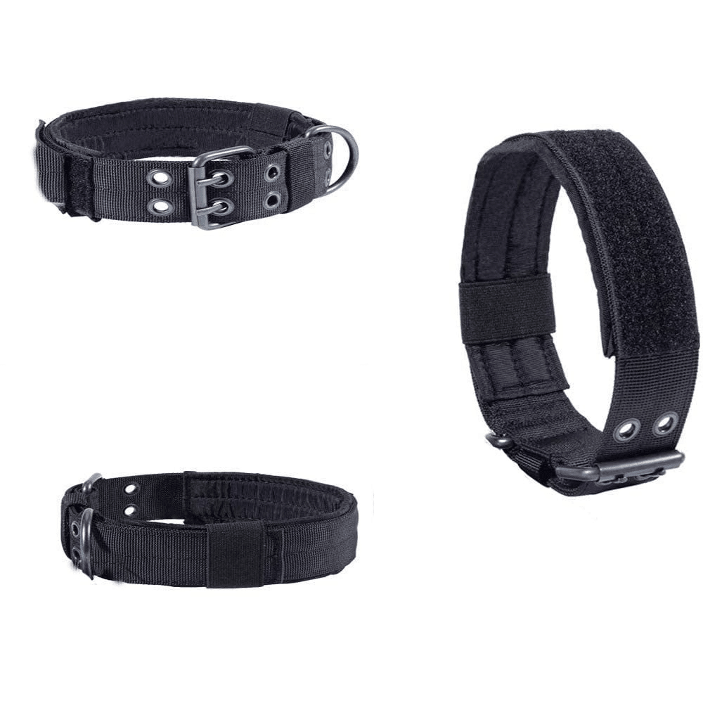 In addition to being tactical and trendy, wide large dog collars tend to be safer and stronger than their thin counterparts. The extra material distributes pressure against your dog’s throat more evenly, which can REDUCE TRACHEAL DAMAGE in the long run.