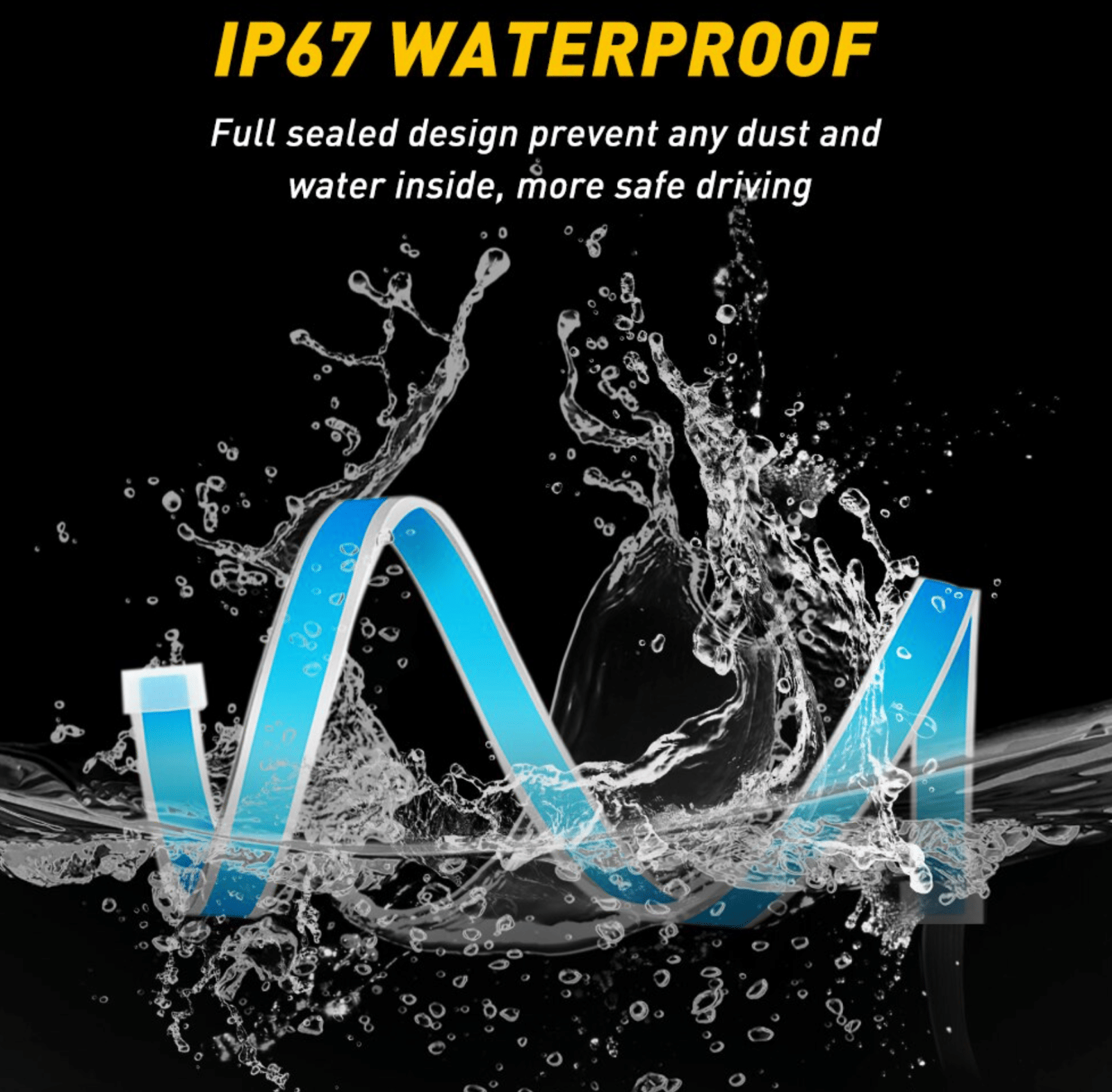 As running light, it will be white when the car is running; as turn signal light, it will be flowing yellow(amber) sequential when the car is turning. It can withstand harsh climatic conditions, unbreakable, and waterproof IP68. The lifespan is over 50,000h.