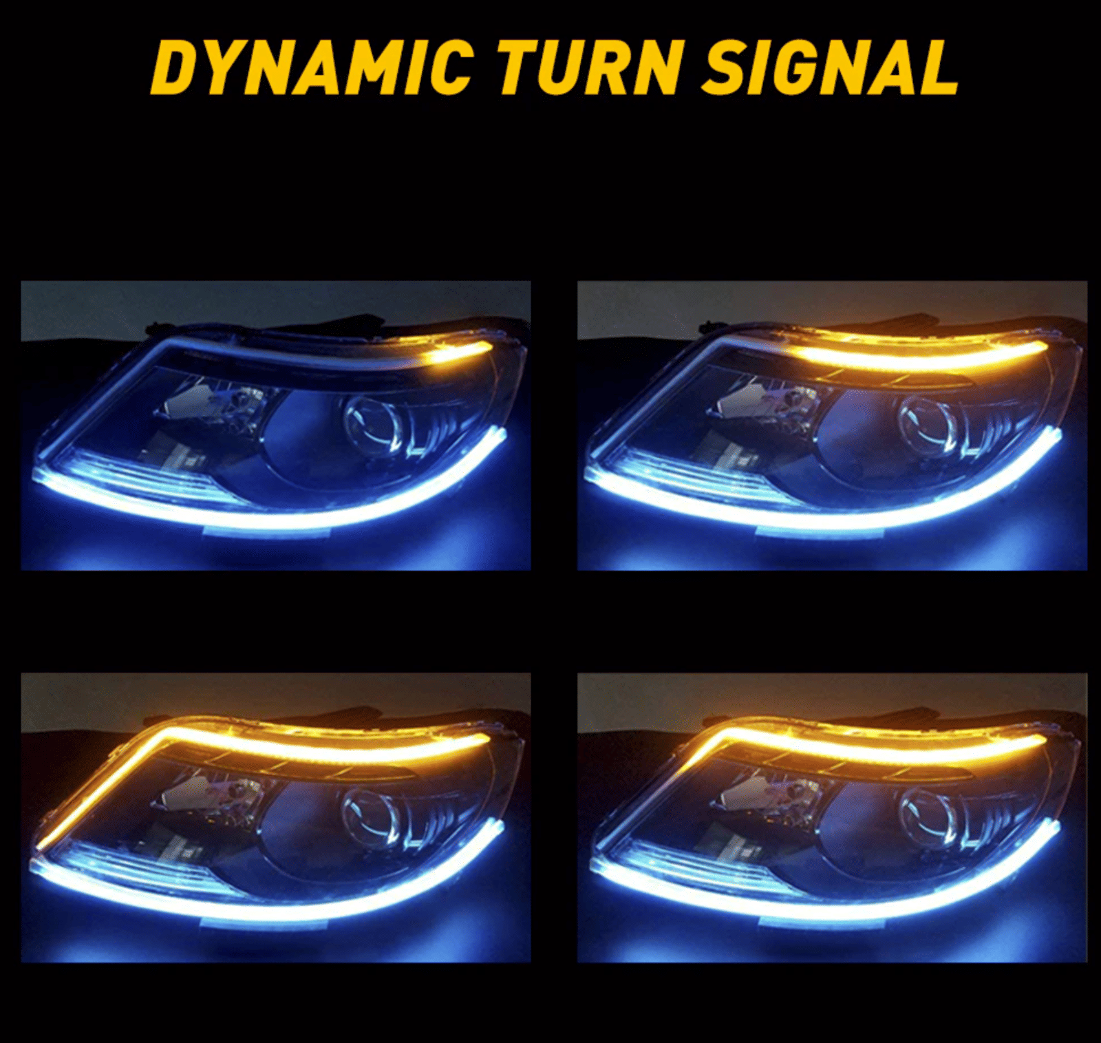 With 156 high-quality LEDS, the LED strip can output two different colors of light, Cool white and yellow, which can be used as a DRL and turn signal light. When the car is driving normally, the Cool white light is on. When the car is turning, the Cool white light will turn into yellow light.
