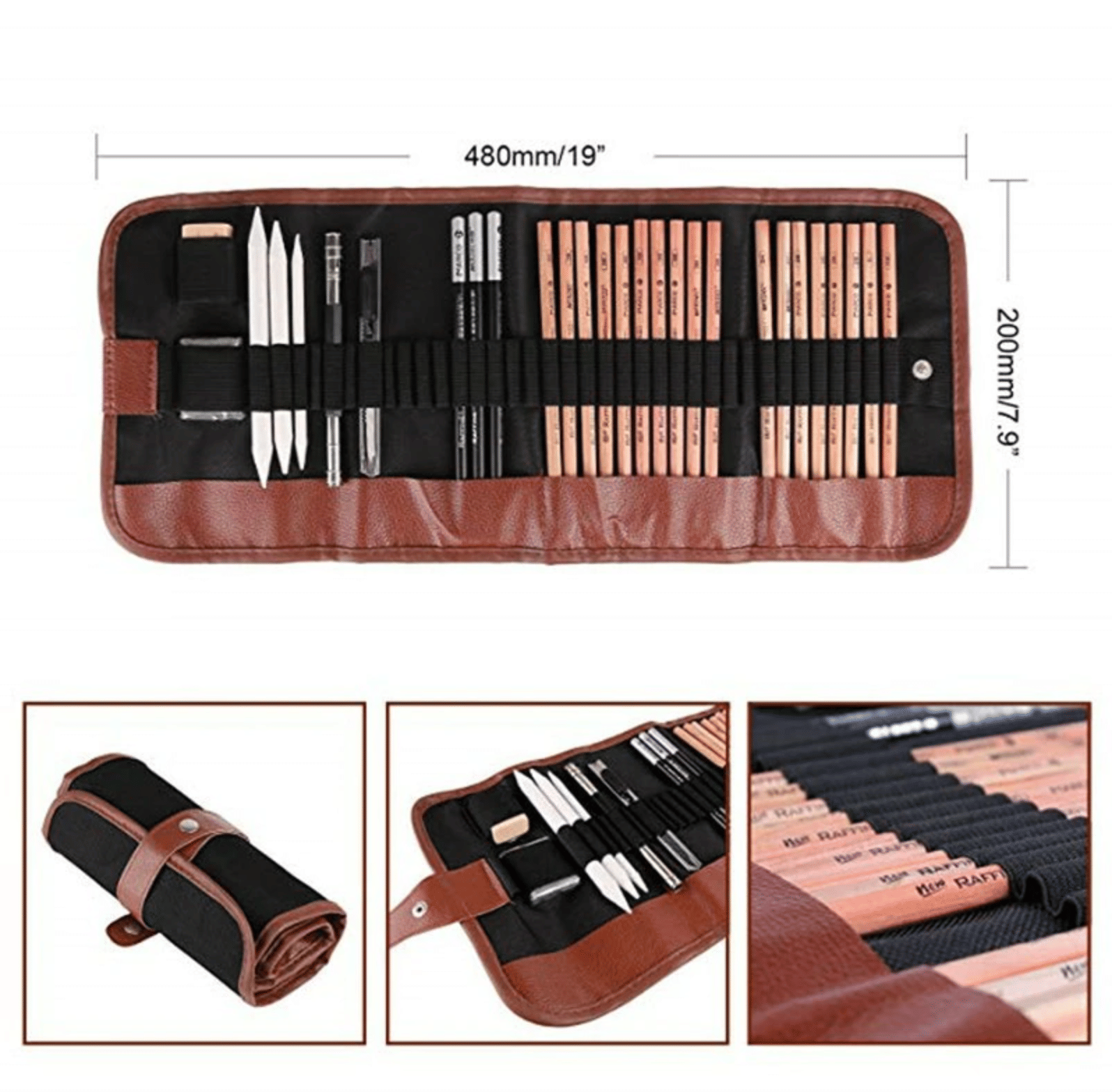 - Premium Quality & Eco-Friendly Adopt eco-friendly material, provide a protection for your health. Durable art knife + Portable and dirt-resistant canvas roll bag + Premium sketch Pencils + Exquisite Metal double-end pencil extender.