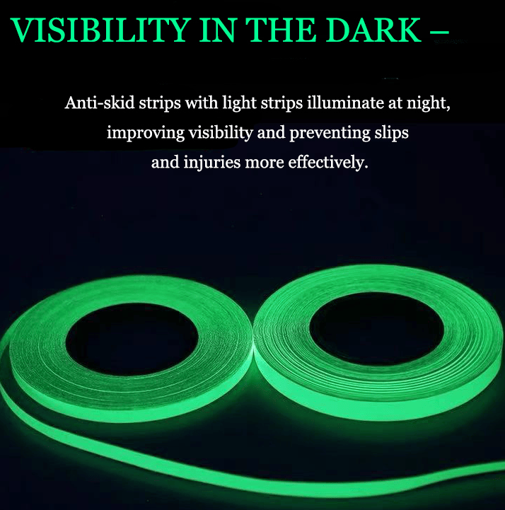 - Safety Luminous Tape Fluorescent tape, made of premium eco-friendly material, is durable, waterproof and has great viscosity. Its bright green light in the dark will make people pay attention to the safety under their feet.Very practical noctilucent tape! You will receive 2 rolls of 10 x 0.5 .