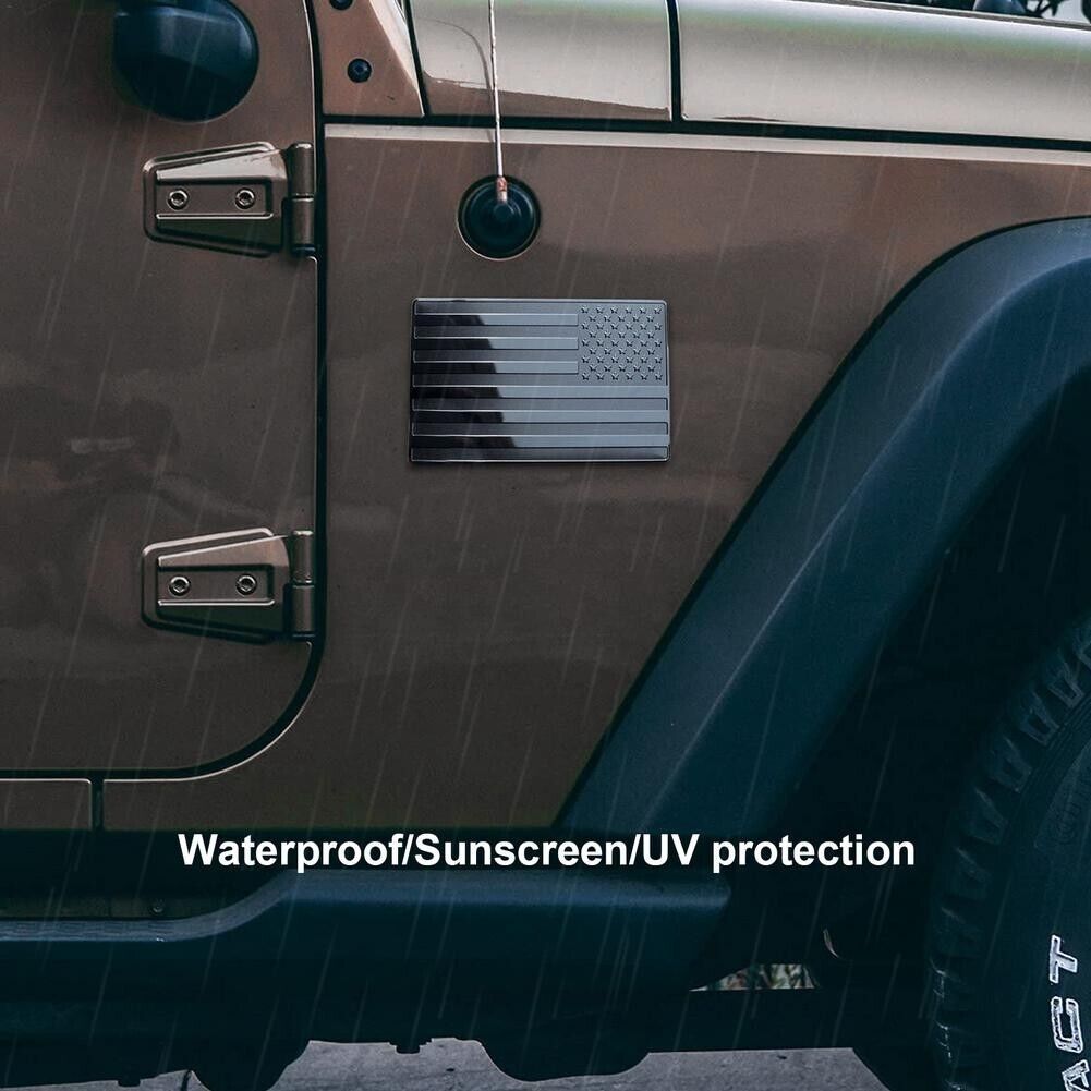 - Package: Unique and beautiful black embossed flag decal for patriots, each order includes 2 flag badges (come with one USA Regular Orientation and one USA Reverse Orientation, for each side of the car).
