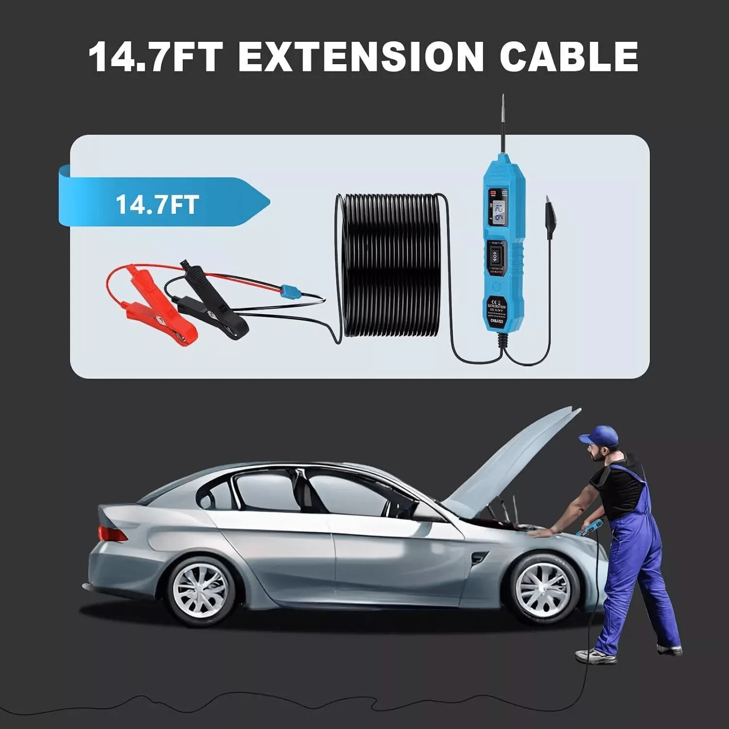 • Extended Reach for Versatile Use – With a robust 14.6-foot extension cord, this kit offers unmatched flexibility to test circuits along the entire length of a vehicle. Perfect for cars, trucks, and other vehicles, it eliminates the hassle of finding a suitable ground point.