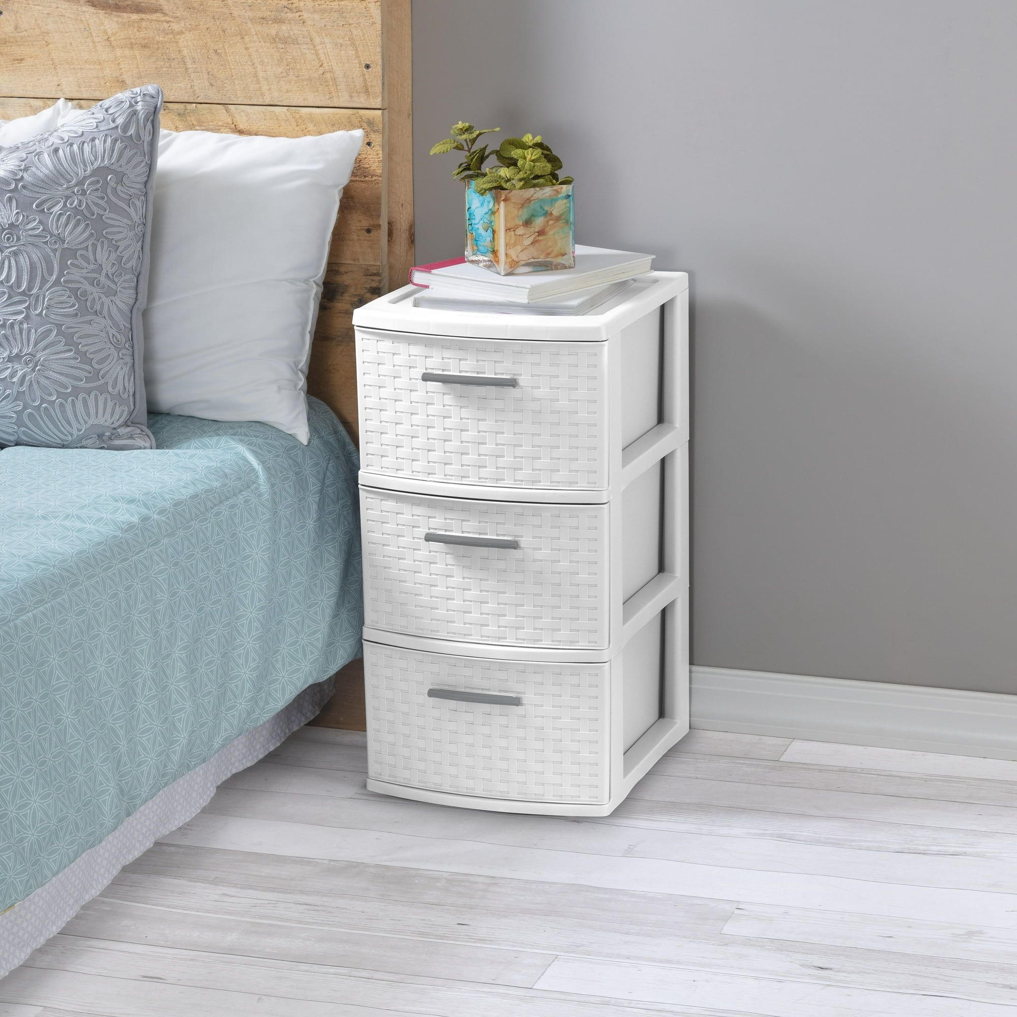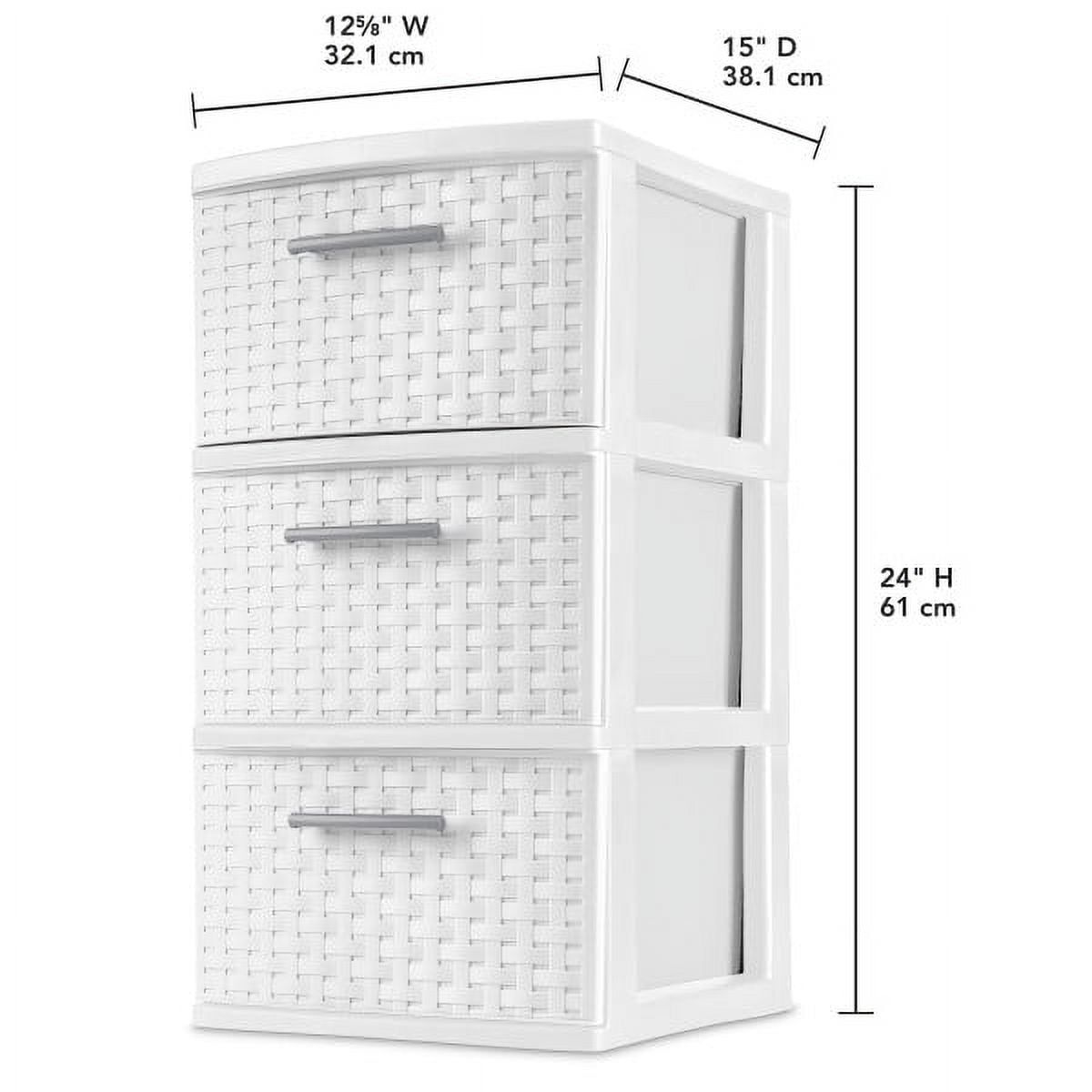 3 Drawer Weave Tower, Plastic Decor Drawers with Pull Handles, White