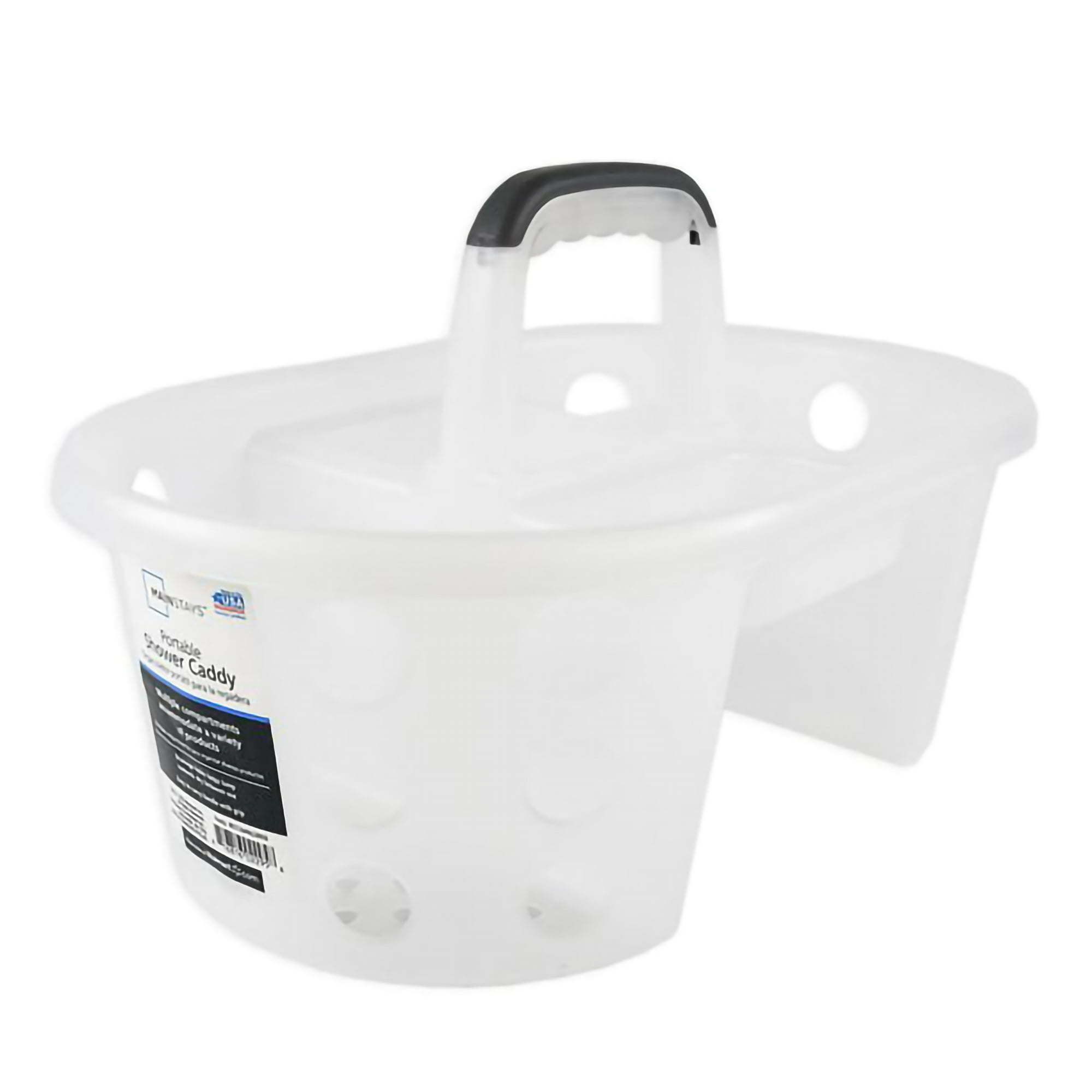 The Shower Caddy is perfect for any bathroom supplies storage needs. This durable frosty white plastic shower caddy can tote your favorite soaps and shampoos to the bathroom whenever you need it, wherever you are. The Shower Caddy sports a nice, comfortable handle so transporting your items is easy. Whether you live with roommates, at a dorm, or just like to keep your personal items in one place, it’s the perfect place for all your shower supplies and sundries. Each caddy has four compartments for storage. The shower caddy can also store household cleaners, small tools, arts and crafts supplies, or even emergency supplies in one place. Pick one up for the garage as well, it’s great for small tools or gardening supplies. It works perfectly to keep all your items whatever they are organized and in one place.