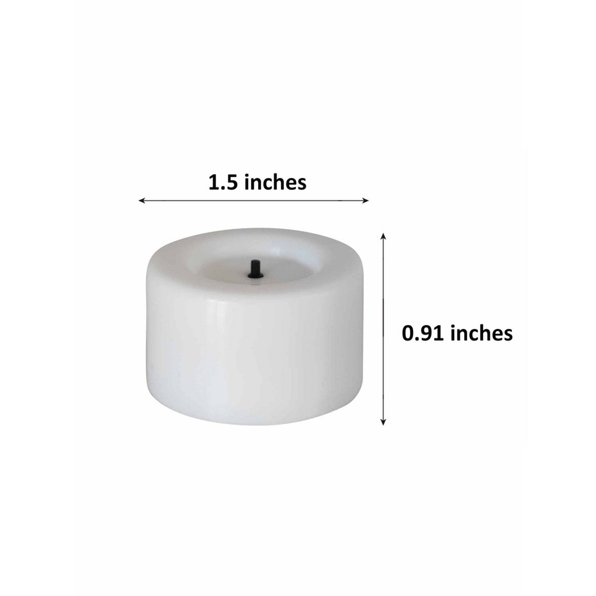 1.5 inch Flameless LED Tealight, White Color, No Scent, set of 6, Black Wick. These tealights has simulated black wick gives the appearance of real candles, without the risk of an open flame.Flameless design is safe to use around pets, home furnishings, and children.Made from premium plastic. ideal for wedding, parties, date, home decoration etc. For indoor use only.Unscented Led Tealights Flameless Candles, White, 4.60", 0.18 lb
