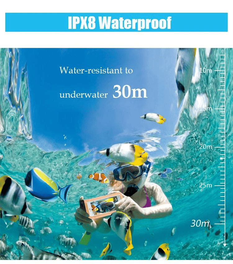 - [ULTRA CLEAR PICTURE UNDERWATER]: With high transmittance transparency technology, this phone pouch provides a crystal clear photo capture of the underwater world. Best for travel or outdoor activities such as skiing, surfing, water skiing, rowing, beach, floating fishing, pool swimming, boating, kayaking, snorkeling, diving, cruises, camping, waterpark activities or other beach playing.