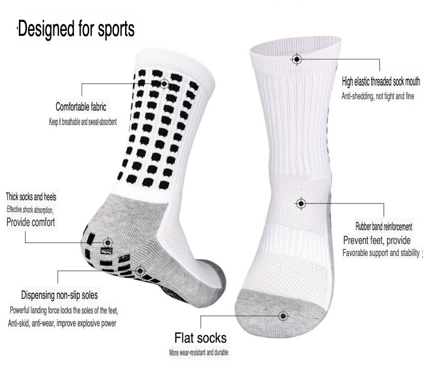 3 Pair Sport Socks Anti Slip W/ Grip Soccer Men Football Basketball Sock Premium
