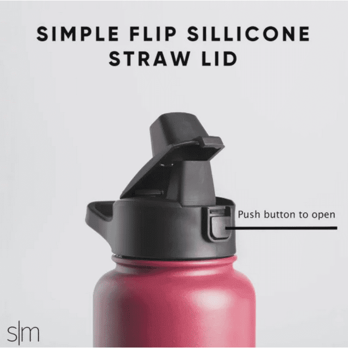 The Simple 32 fl oz Stainless Steel Summit Water Bottle features double-walled vacuum insulation to keep drinks cold for hours. Made from premium 18/8 stainless steel , it has a 32 fluid ounce capacity and comes with a silicone straw lid . The lid includes a push-button straw access and a silicone mouthpiece, but is not recommended for hot liquids. The bottle is designed for staying hydrated on the go, making it a suitable choice for daily use. Its stainless steel construction and insulation capabilities make it a practical option for those seeking a durable and temperature-retaining water bottle.