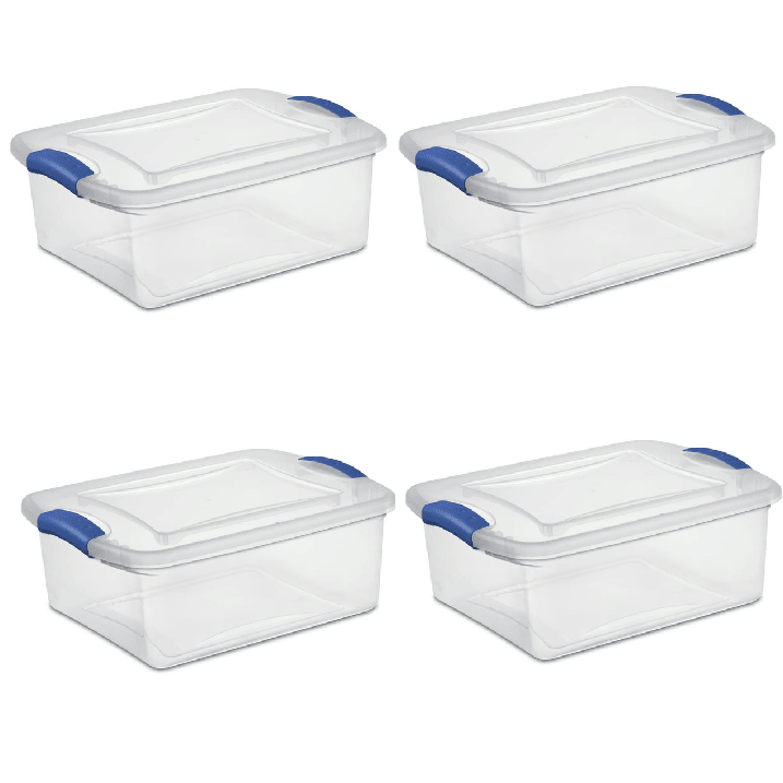 Step up to ‘s versatile 15 Quart Clear Latching Storage Bin and get organized! The clear base and lid let you easily view and locate stored contents from any angle. The color accent latches keep the lid attached to the base, keeping items contained. The recessed lids help bins stack to efficiently use vertical space. This size plastic storage container is perfect for shoes, boots, clothing, accessories, crafts, and more, and conveniently fits on standard shelving. This is the ideal solution for a variety of storage challenges, helping to bring order to closets, bedrooms, craft rooms, and dorms!