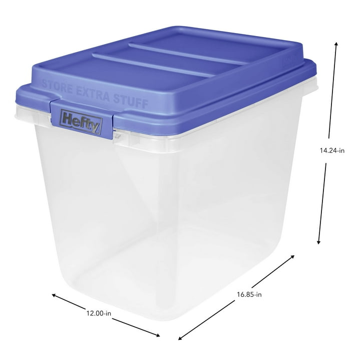 Looking for the best storage bins to organize your linen closet or pantry? In search of a durable storage container to stow away anywhere in the home, garage, or attic? Look no further! The Hefty HI-RISE, 32 quart clear storage bin is designed to store a variety of household items, including pantry staples, clothing & shoes, seasonal items and accessories. Ready to neatly STACK? Hefty’s HI-RISE patented lid design allows for secure stacking and ABOVE the rim storage, to efficiently save space within your home. A CLEAR view? Identify items quicker and more effectively with the HI-RISE clear storage base. The large, click secure latches allow for secure and comfortable transport. Work to maintain your storage space and organize your household with maximum containment. Store and better protect items to SAVE SPACE and edit your home or business. Check out the complete line of Hefty HI-RISE storage bins to help create a clean & uniform storage space! Adult usage.