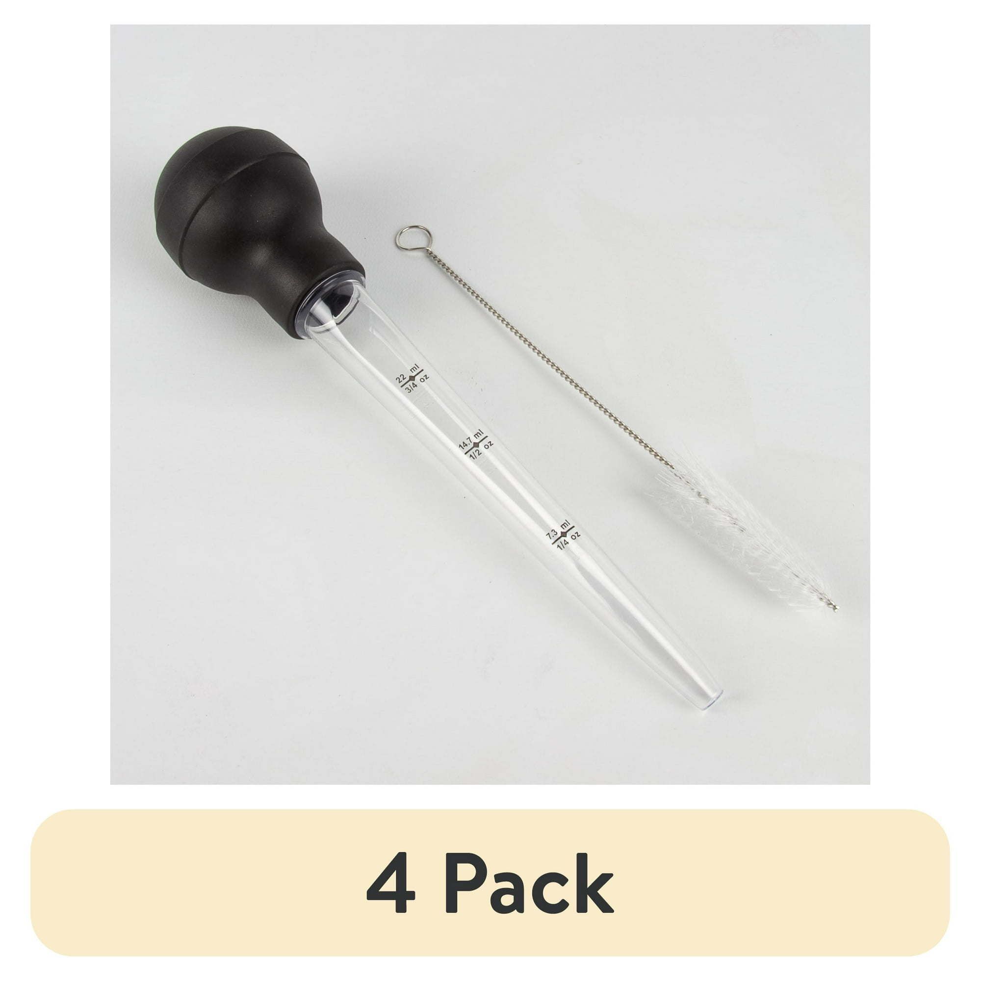 (4 pack) Plastic 10.8″ Meat Baster with Cleaning Brush Features Dual Measurement Marks 1 ounce Volume