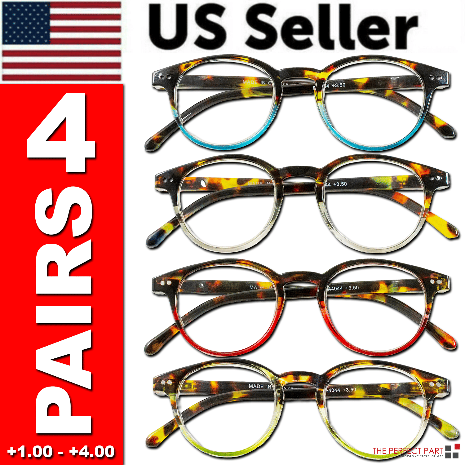 4 Pairs Mens Women Spring Hinge Round Horn Power Oval Reading Reader Glasses 1-4