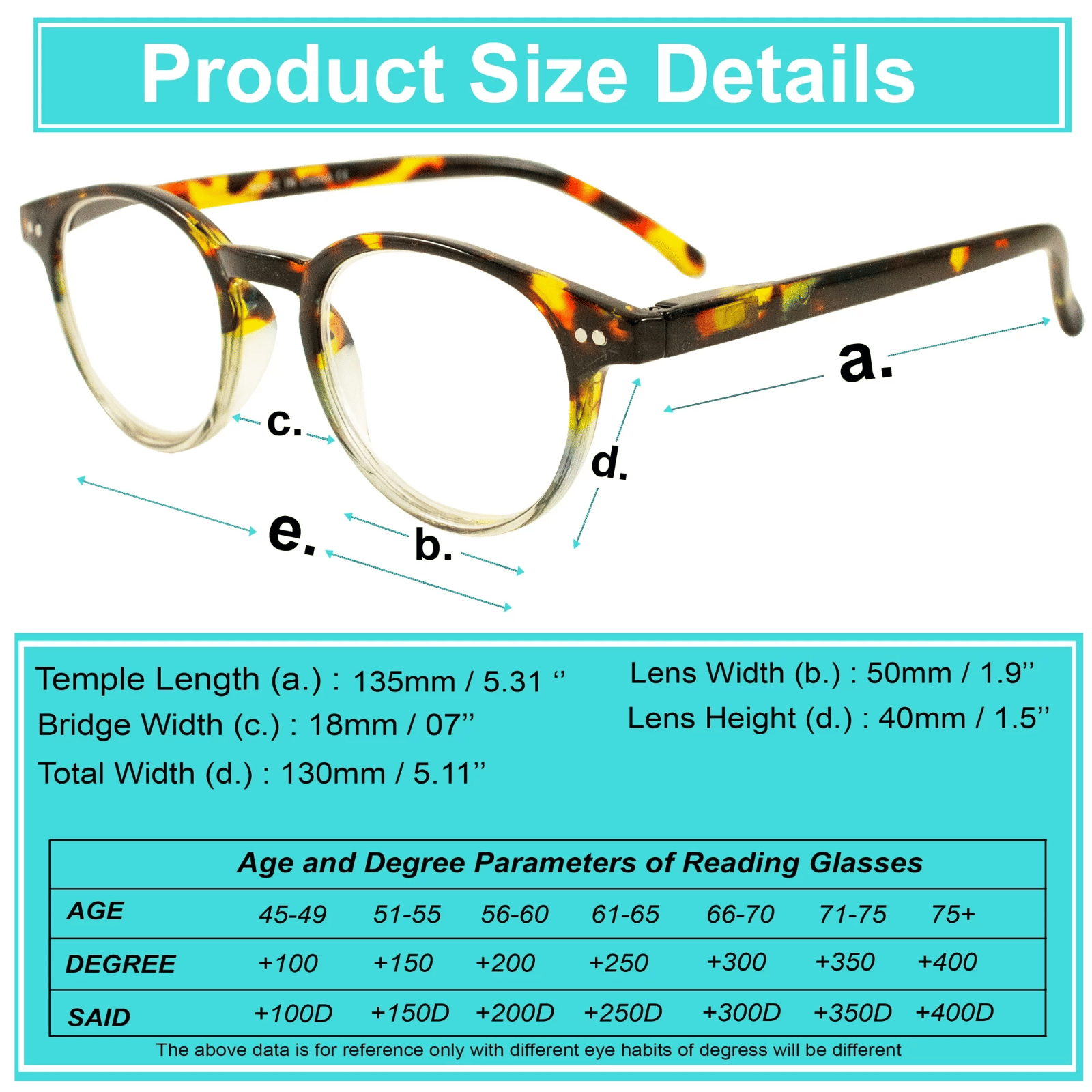 4 Pairs Men’s Women Spring Hinge Round Horn Power Oval Reading Reader Glasses 1-4