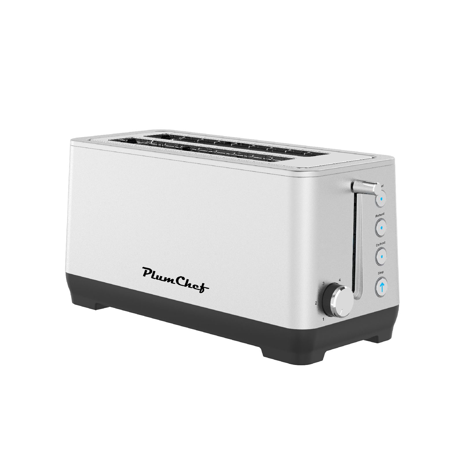 4-Slice Toaster, Extra Wide Long Slot Toaster, 6 Browning Settings, Bagel/Defrost/Reheat Functions, Removable Crumb Tray, Stainless Steel Housing, Silver