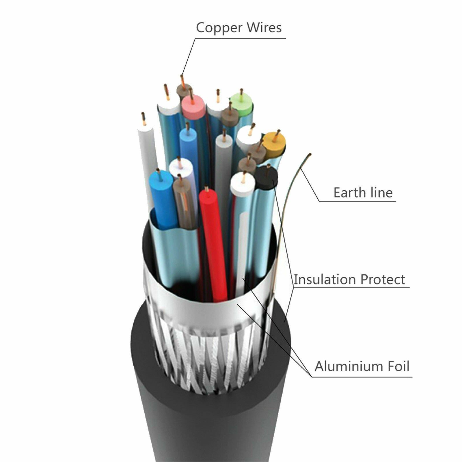 Gold-plated connectors help resist corrosion and reduce tarnish to provide the highest signal transfer rate. Molded strain-relief design helps less plug/socket pressure for extra durability.