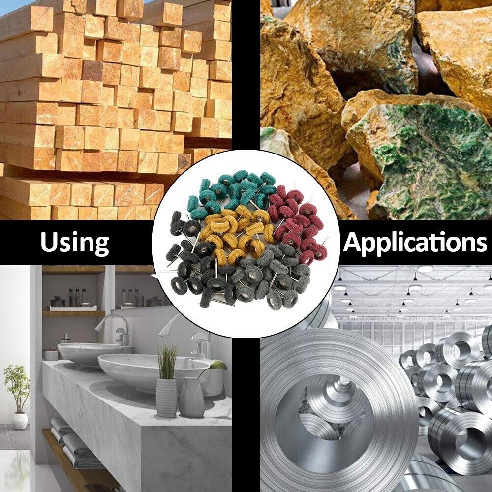 - Usage: These 50 pcs polisher abrasive buffing wheel are used for DIY engraving, grinding, polishing (wood, metal, stone polishing purposes). These are high quality 3mm scouring pad abrasive grinding head wheels for electric grinding rotary tool accessories. Can be used for metal grinding and polishing with good wear resistance, durable and practical.