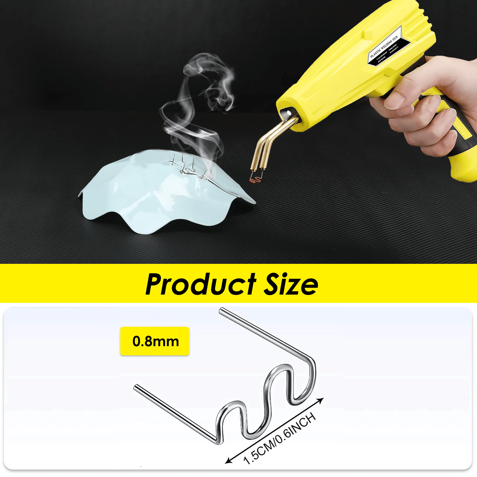 - You will be provided with an ample quantity of 500 hot staples, each measuring 0.8 mm. This generous supply is perfect for fulfilling various repair needs for bumper cars, as well as front and back baffle plates of cars. These hot staples are ideal for junior welding operators, making welding tasks easier to accomplish.