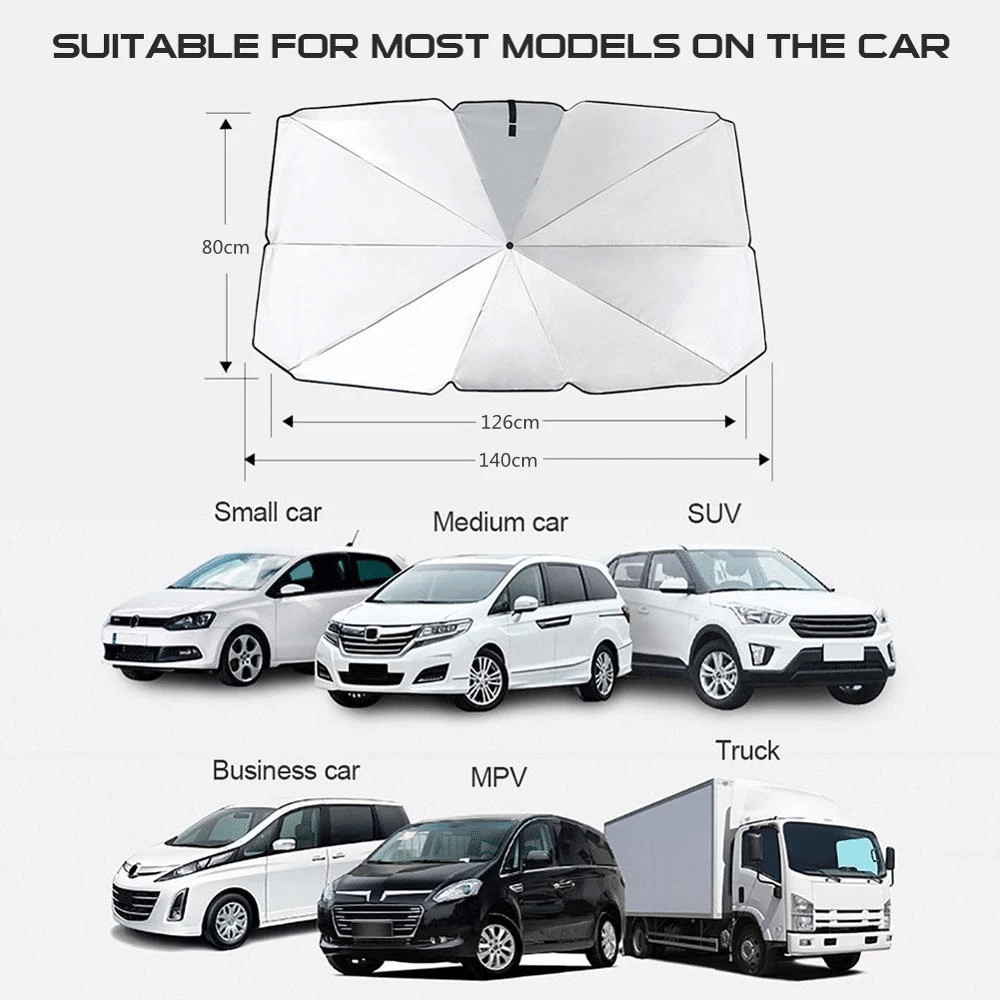 Subvert traditional sunshade, our sunshade umbrella is a new way blocking 99% of the sun s harmful UV rays to keep your car in cool and comfortable condition in hot summer days.