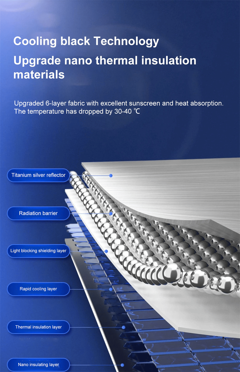 • Umbrella Material: Titanium Silver Coating + Heat Resistant Cloth