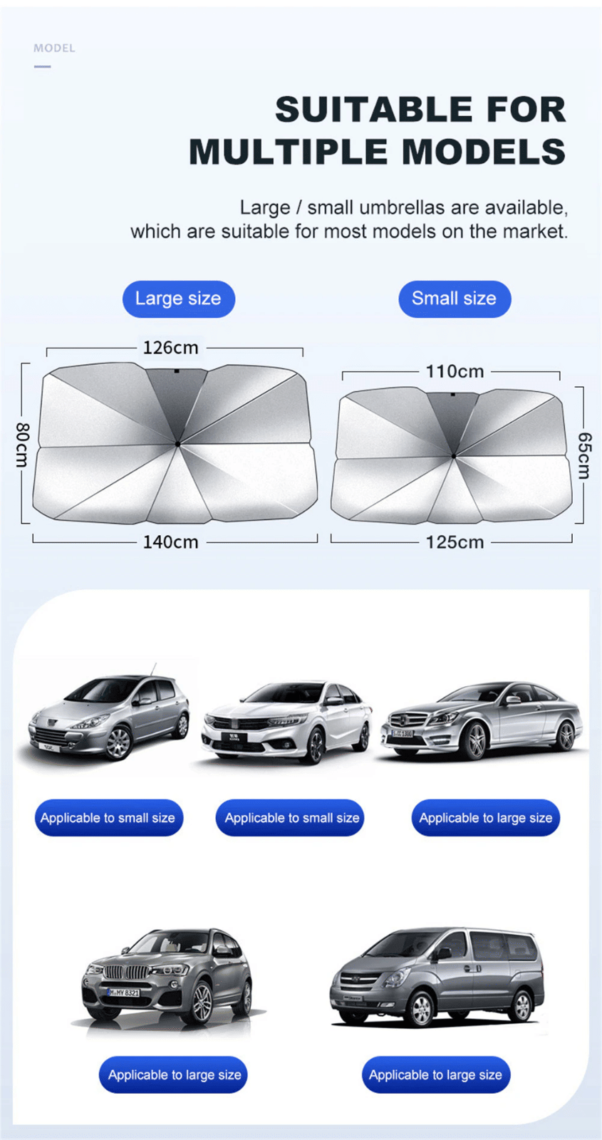 Sunshade for car windshield Size is and 57"X 31", Fit right into most Compact Car, Tesla, Sedan, SUV, MPV, Minivan, Pickup Truck and more.Perfectly with Car window shades front windshield without any gaps, don’t have to worry about any size issues.