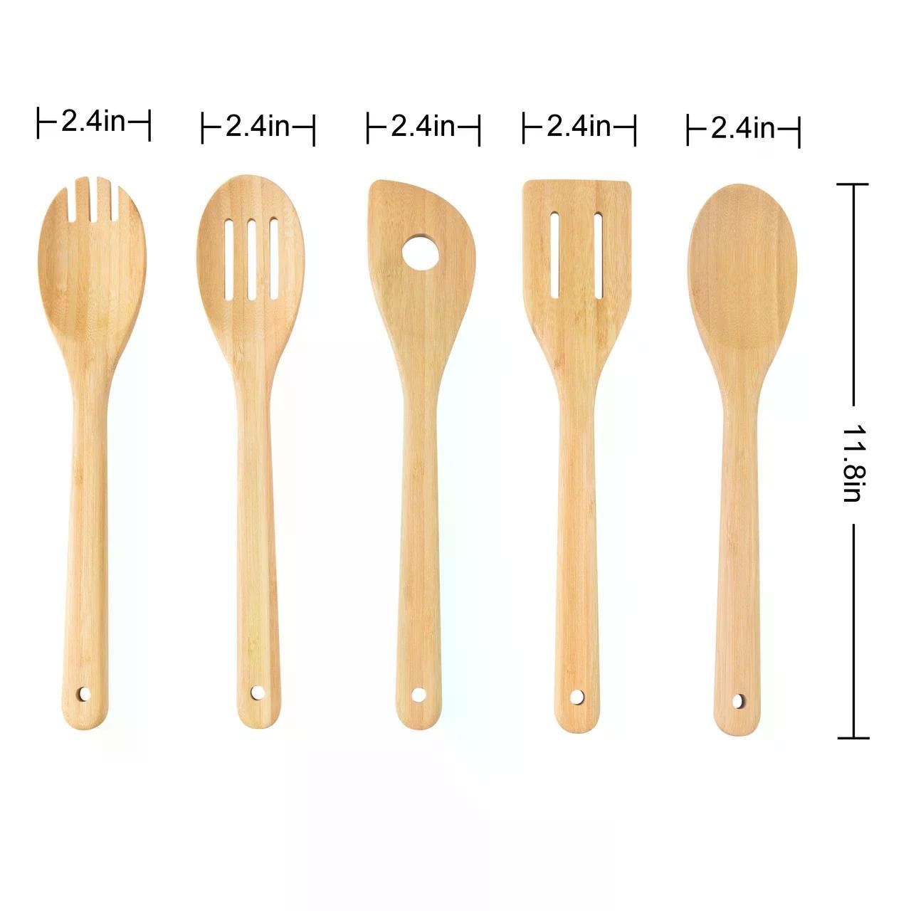 5pk Bamboo Spoons for Cooking, Kitchen Essential Tools Set